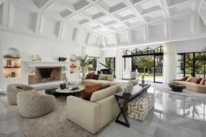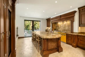 Set on a 4,350 m² plot, the villa blends classical craftsmanship with contemporary refinement. A grand entrance patio with fountains leads into expansive living spaces with double-height ceilings and full-height glass doors, allowing light to flow seamlessly through the open-plan design. Every room evokes elegance — from the refined formal dining area to the bespoke chef’s kitchen with extensive storage.