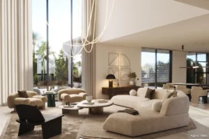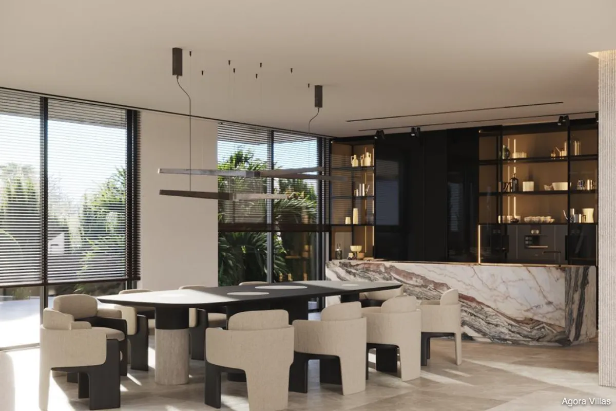 Designed by renowned Archidom Studio and interior-conceptualised by Vasco Trigo, the project features a 7-bedroom, 9-bathroom villa with over 597 m² of terraces and a south-facing orientation. Natural stone, wood, and glass define the aesthetic, while vast outdoor living areas — including a landscaped garden and private pool — embrace the warmth and light of Marbella’s year-round climate.