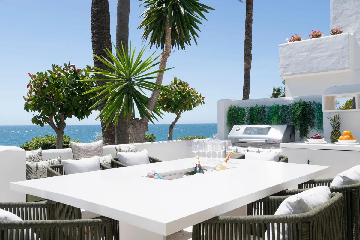Jardín Persa is a fully gated community with lush, Alhambra-inspired gardens, tranquil fountains, and direct access to the beach promenade. Just steps from the world-class dining and leisure facilities of Puente Romano, and only minutes from Marbella town and Puerto Banús, Apartment Malibu is the ideal residence for a sophisticated buyer seeking beachfront exclusivity and investment value in the heart of the Golden Mile.