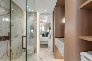 The state-of-the-art domotic system controls lighting, temperature, and security with ease. Designed to feel like a private yacht moored at sea, the interiors reflect calm, precision, and understated luxury. Included in the property is a secure underground parking space and a private storage room.