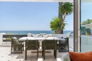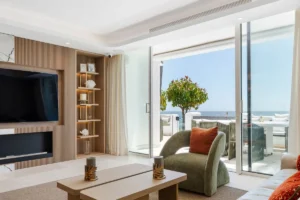 Positioned directly on the beachfront in the prestigious Jardín Persa enclave of Puente Romano, Apartment Malibu offers a rare opportunity to experience Mediterranean living at its most refined. This exquisitely renovated residence combines the charm of Andalusian design with sleek contemporary interiors, set within Marbella’s most iconic Golden Mile address.