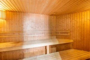 Residents enjoy exclusive access to a resort-style swimming pool, modern gym, and sauna. Additional comforts include underground parking and a private storage room.