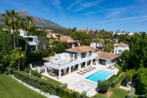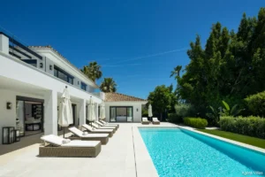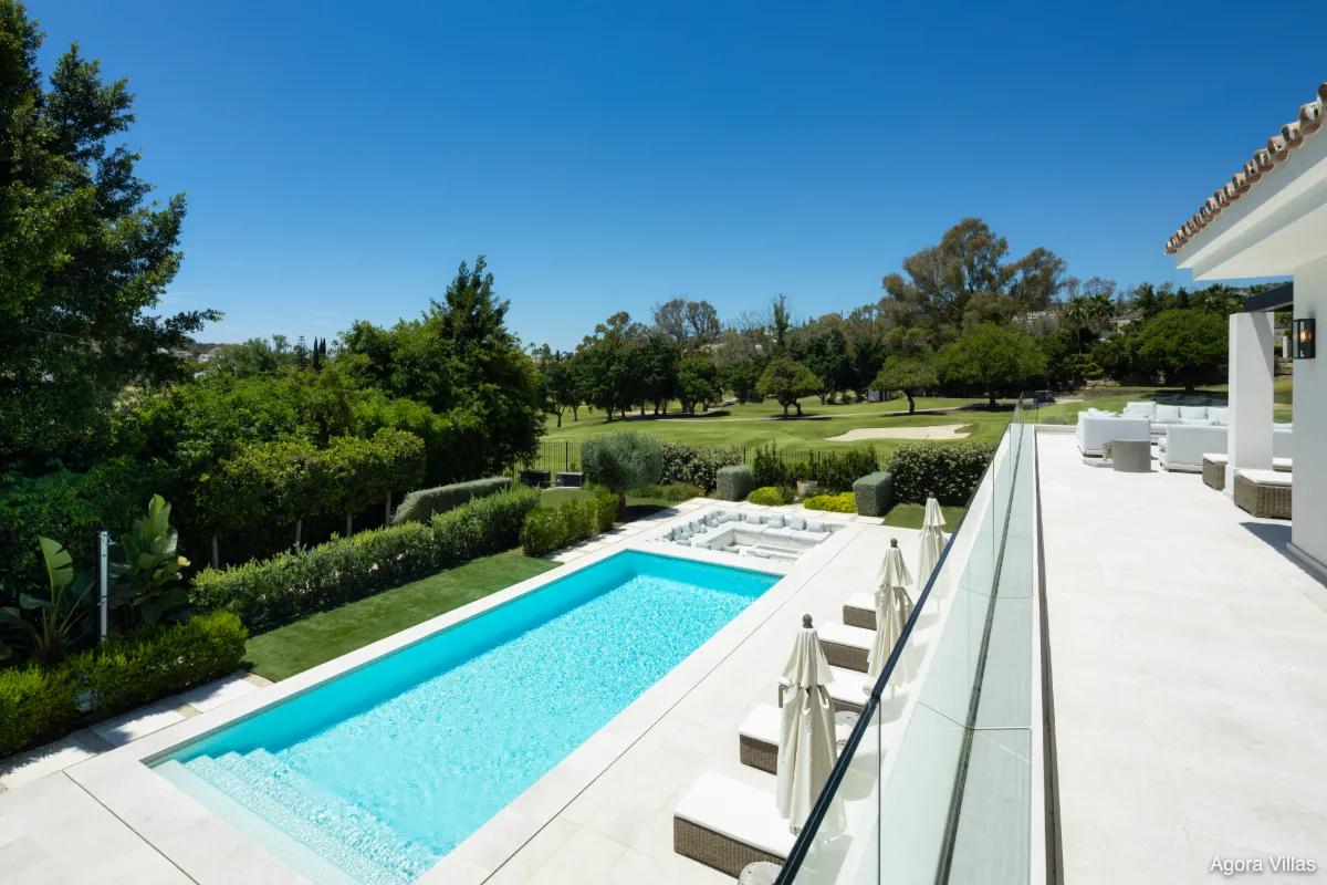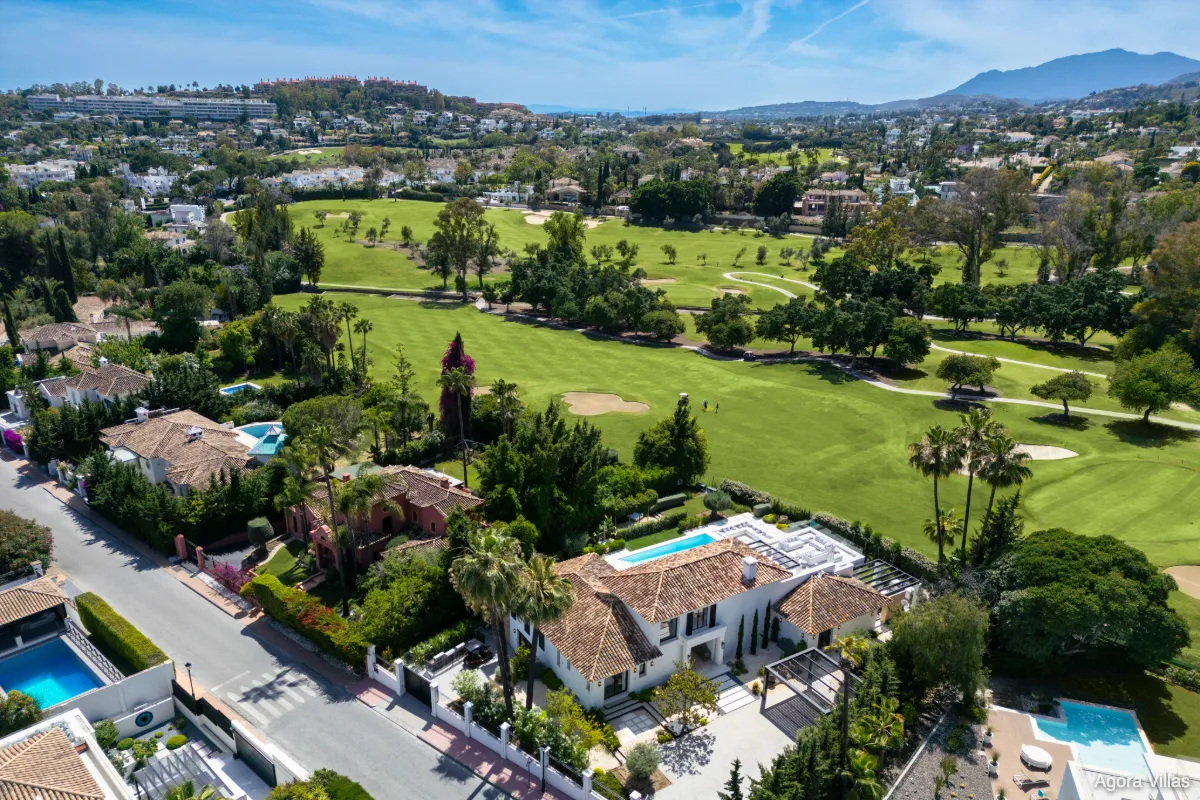 Positioned on a prime frontline golf plot in the heart of Marbella’s Golf Valley, Auriga 36 is a five-bedroom villa that masterfully blends timeless architecture with contemporary interiors. Recently renovated to exceptional standards, this residence offers expansive outdoor spaces, luminous living areas, and sweeping golf course views — all within one of Nueva Andalucía’s most coveted residential streets.