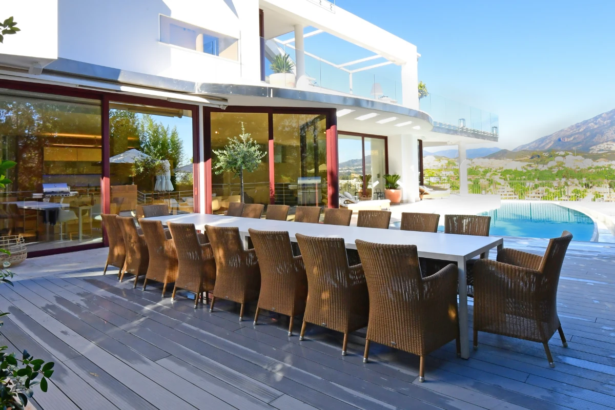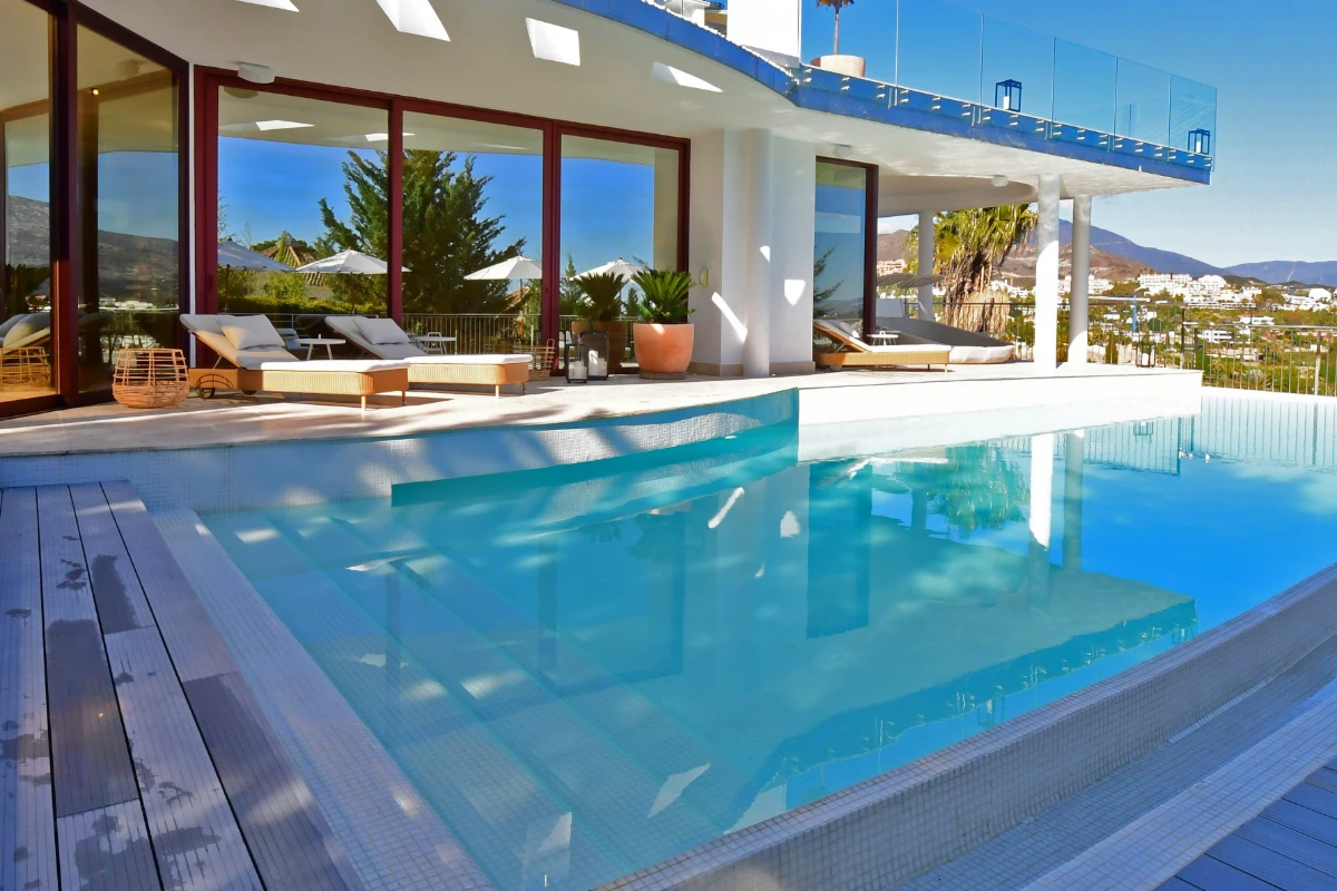 Poised in the heart of Marbella’s Golf Valley, Casa Blanca is a striking, modern villa offering panoramic views of La Concha and the Mediterranean Sea. Designed for elevated living and entertaining, this south-east facing residence is just minutes from Puerto Banús and the coast, yet enjoys the privacy and calm of a prestigious Nueva Andalucía enclave.