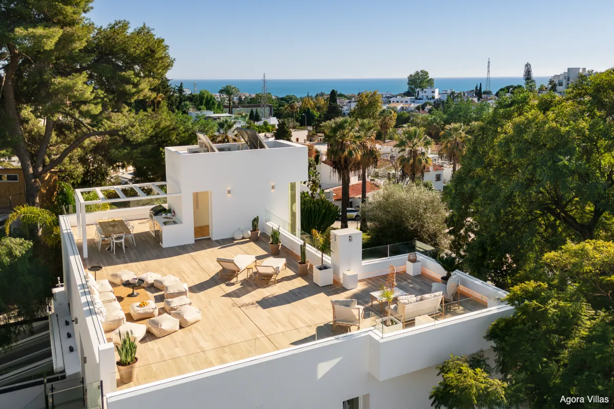 With a spacious 1,150 m² plot and 310 m² of built space, this six-bedroom villa was originally built in the 1970s and has undergone a complete transformation. The result is a home that feels brand new yet retains its original character. A newly added second floor, rooftop solarium with panoramic sea views, and a private guest house are just a few of the standout features.