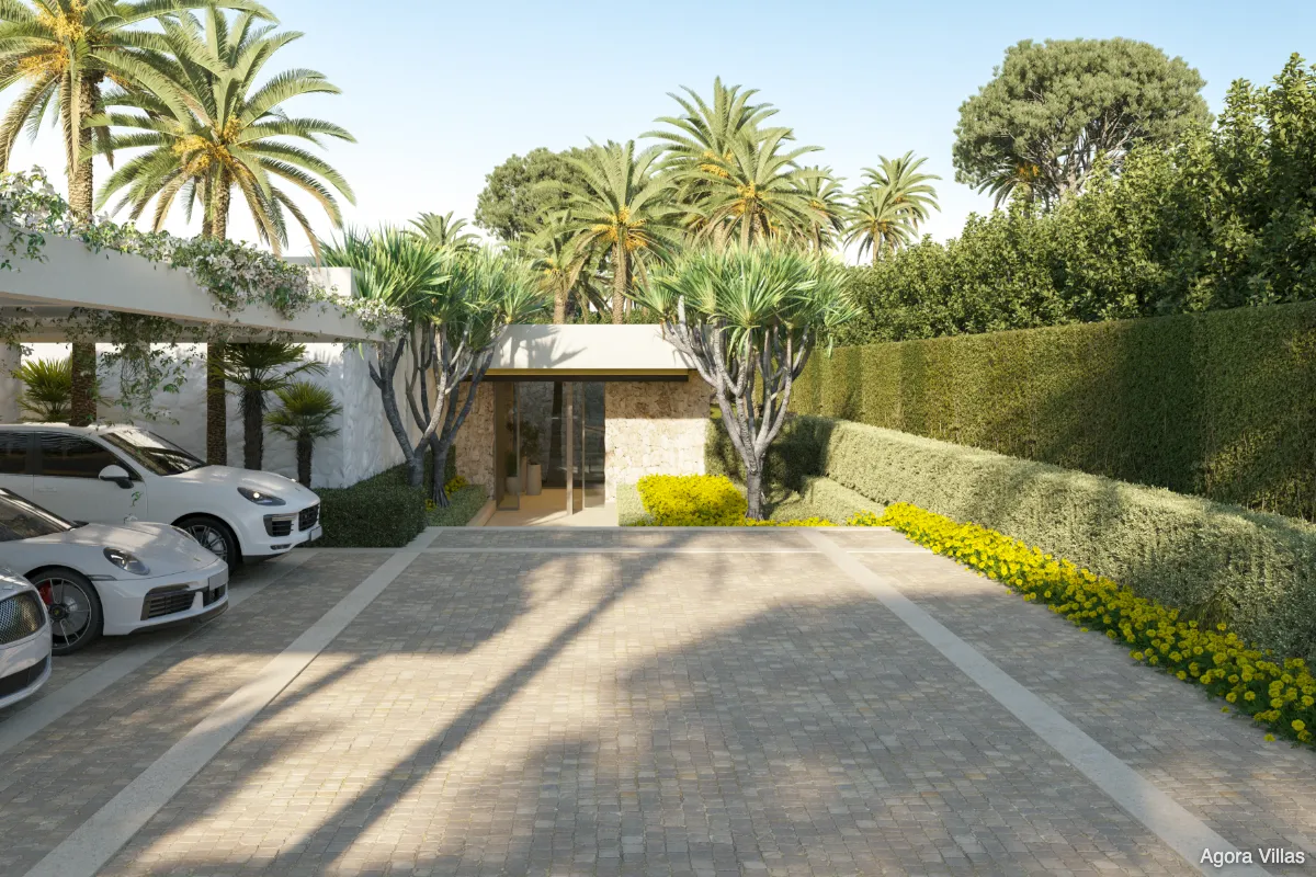 Positioned on a 2,000 m² plot, the project outlines a 1,210 m² built villa with 450 m² of terraces. The layout is crafted for both grandeur and privacy, with seven spacious bedrooms, eight bathrooms, and a carefully balanced distribution of indoor and outdoor spaces. Expansive glazing, premium natural materials, and sleek volumes bring light and serenity into every corner of the future home.