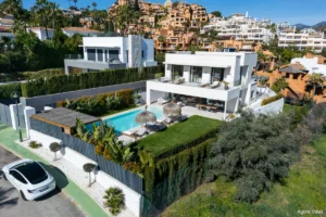 Set in the prestigious residential enclave of La Cerquilla, Cerquilla 54B is a refined five-bedroom villa combining contemporary elegance with everyday comfort. With panoramic views over the sea and surrounding mountains, this south-east-facing home offers a rare balance of luxury, location, and liveability in the heart of Nueva Andalucía’s Golf Valley.
