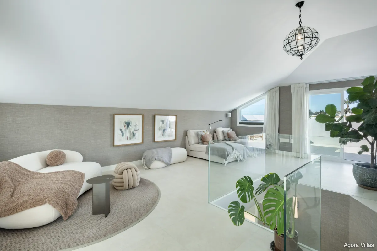 Positioned in the coveted Costa Nagüeles II enclave on Marbella’s Golden Mile, Costa PH is a striking 5-bedroom duplex penthouse that blends contemporary comfort with panoramic views of the Mediterranean and La Concha. Designed for refined indoor-outdoor living, this residence captures the essence of elegant coastal life — just minutes from Marbella’s finest dining, boutiques, and beaches.