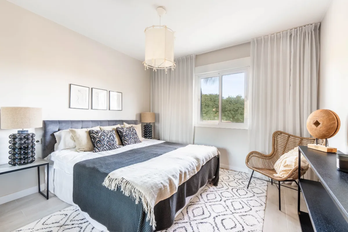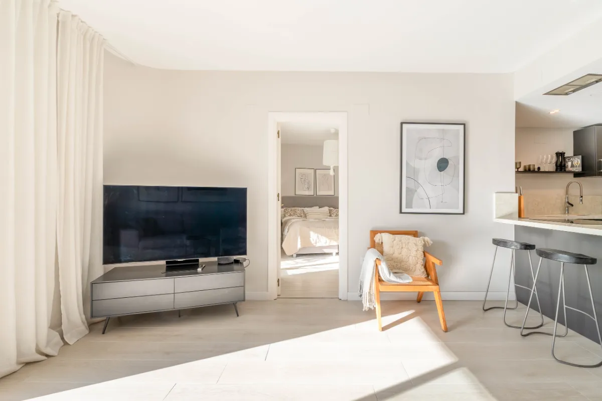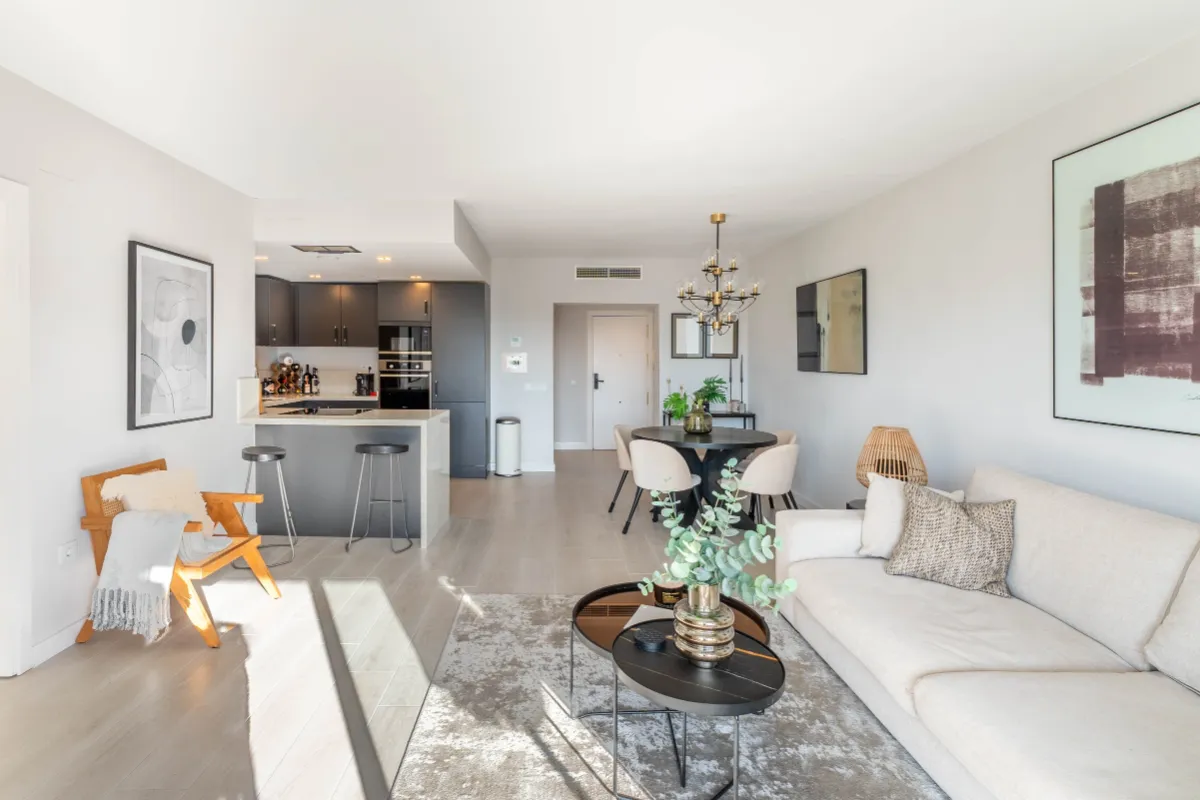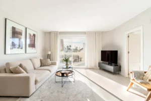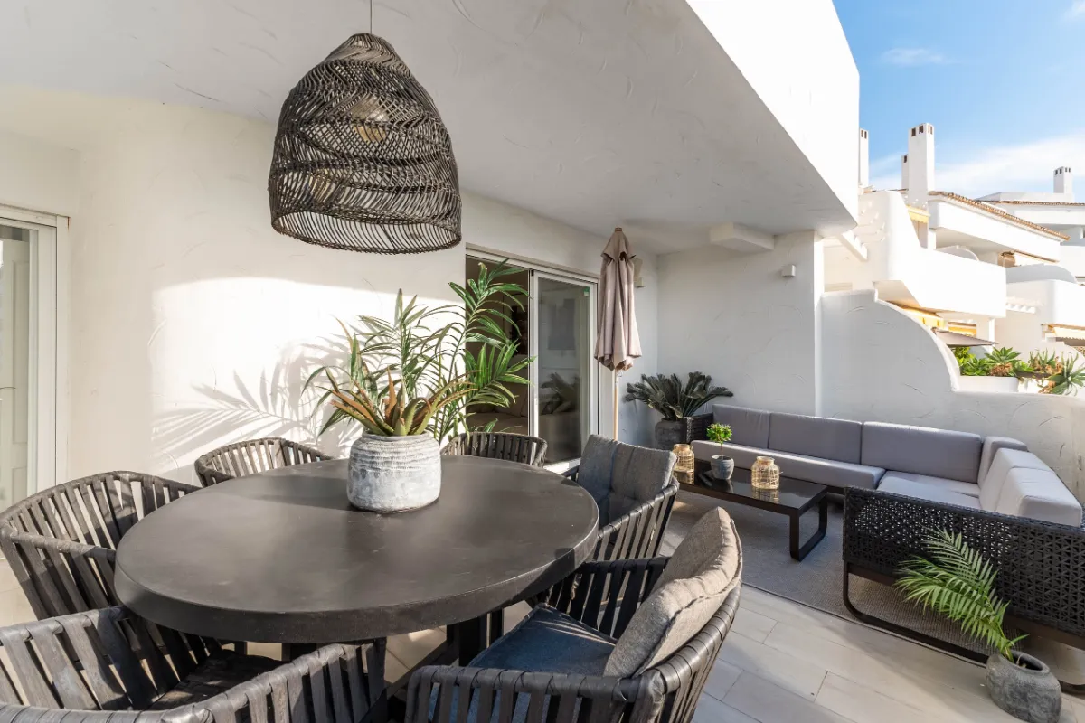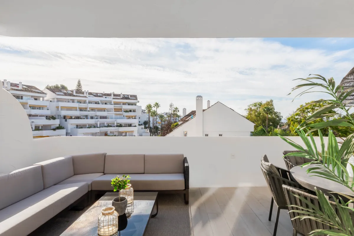 Located in the heart of Marbella’s Golf Valley, El Dorado is a recently renovated 3-bedroom apartment offering a serene, sun-drenched retreat just moments from Puerto Banús. With its refined Scandinavian aesthetic and expansive south-facing terrace, this property blends minimalist design with comfort and functionality — ideal for those seeking a stylish lifestyle base or high-performing investment in Nueva Andalucía.