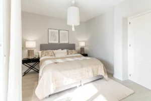 The principal suite enjoys private terrace access and a beautifully appointed en-suite bathroom with underfloor heating. Two additional guest bedrooms offer flexibility for families or guests, supported by a second bathroom, also with underfloor heating. Every space is designed to feel calm, bright, and effortless.