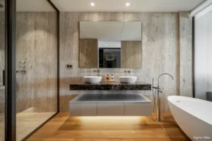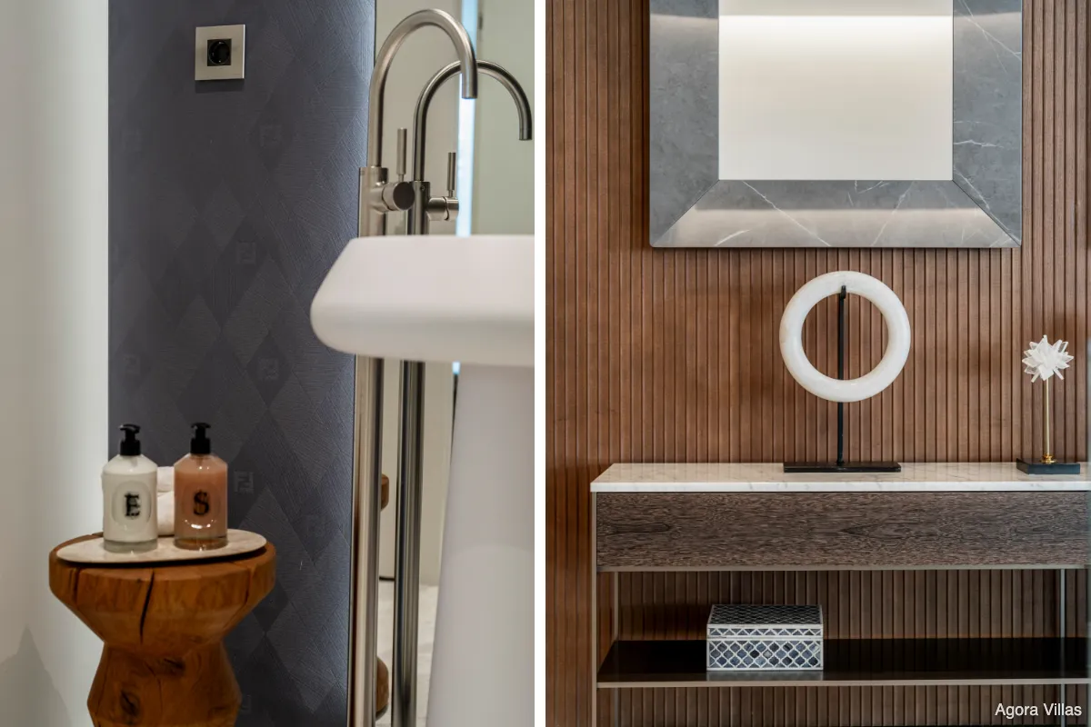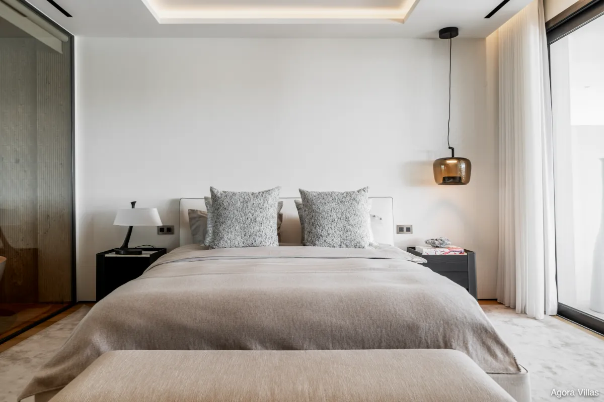 Spanning 472 m² across two levels, the residence includes five en-suite bedrooms—three on the main floor and two on the lower level with private access. The open-plan kitchen flows into a spacious living area, extending to a large terrace with a heated chill-out lounge, a dining zone, and an outdoor kitchen, all overlooking the pool with views of the Mediterranean and La Concha. Every corner is finished with bespoke touches: Fendi cabinetry, Travertine marble, Carrara stone, onyx, and genuine leather.
