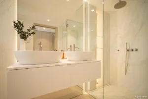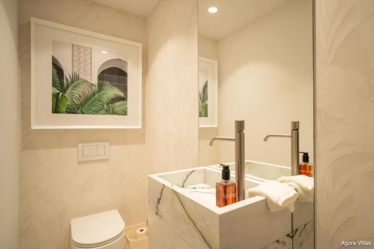 Each of the three bedrooms has been curated for comfort, with the master suite featuring direct terrace access and a spa-inspired en-suite bathroom complete with double vanity, freestanding bathtub, and walk-in shower. The property’s layout and flow make it ideal for entertaining or simply enjoying the tranquil rhythm of resort life.