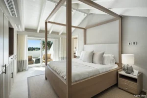 Two beautifully finished guest bedrooms occupy the lower level, offering privacy and calm. Upstairs, the master suite occupies the entire upper floor, complete with a grand en-suite bathroom and a private terrace that invites moments of quiet relaxation.