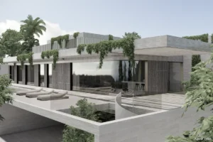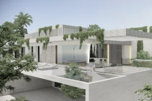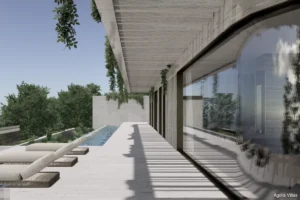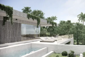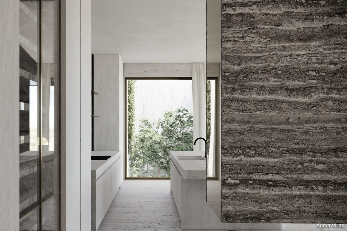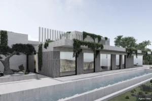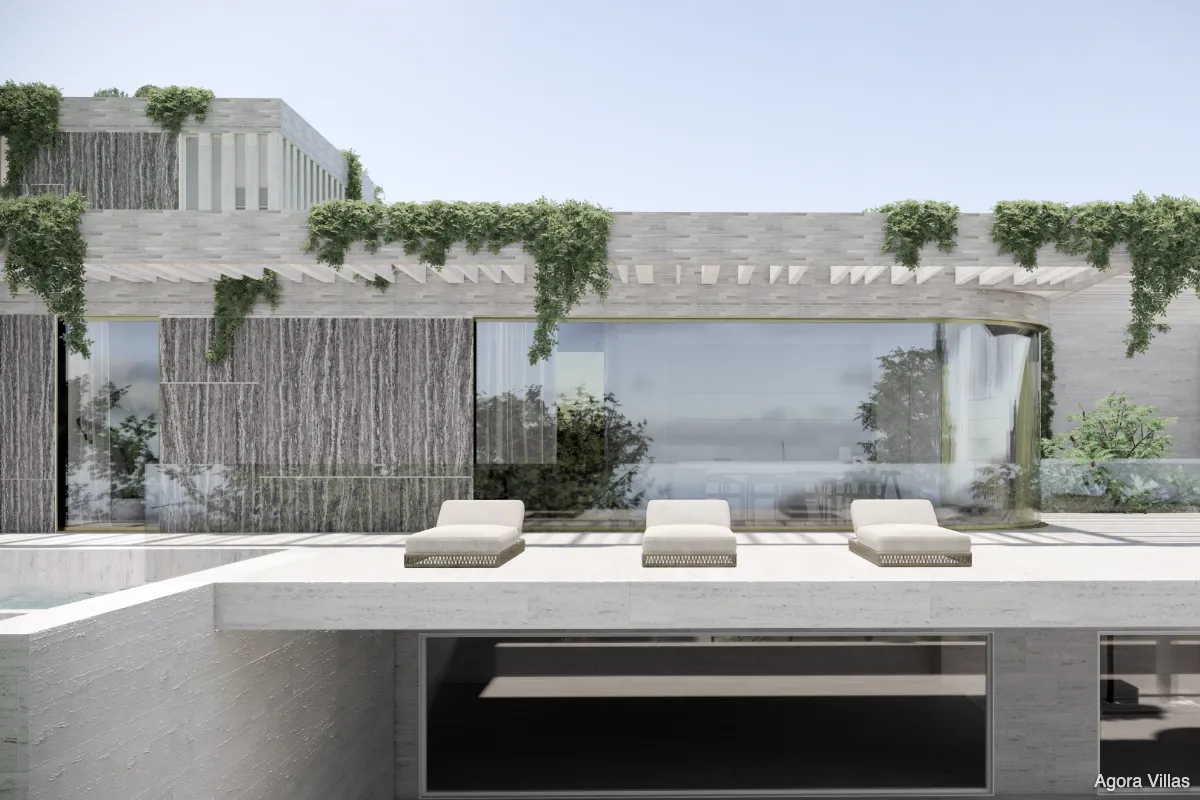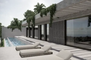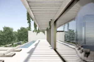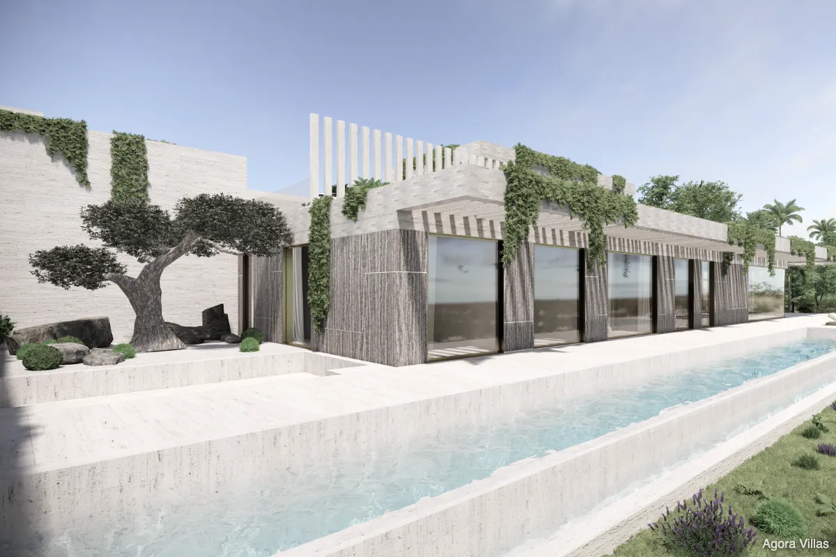 Distributed across two floors plus a spacious basement, the home will offer 5 bedrooms and 4 bathrooms, with the flexibility to include a home cinema, spa, gym, and two additional bedrooms. The layout is centered around flow, privacy, and functionality. Large open-plan living areas with expansive glazing invite the outdoors in, while the 26-meter-long private swimming pool becomes the focal point of the villa’s outdoor living space.