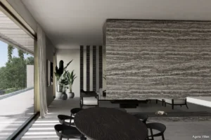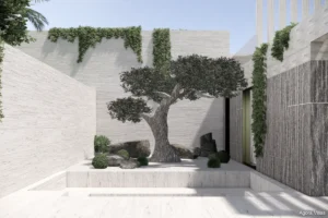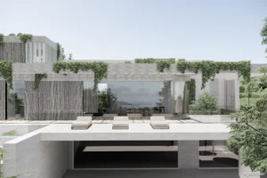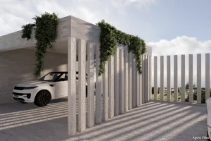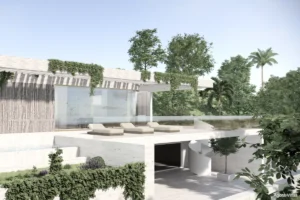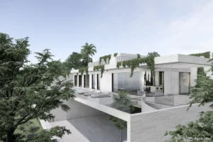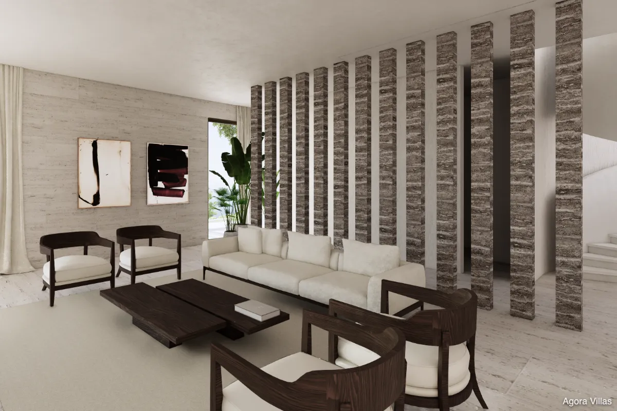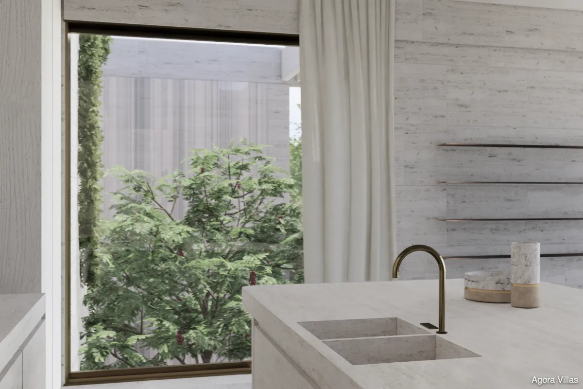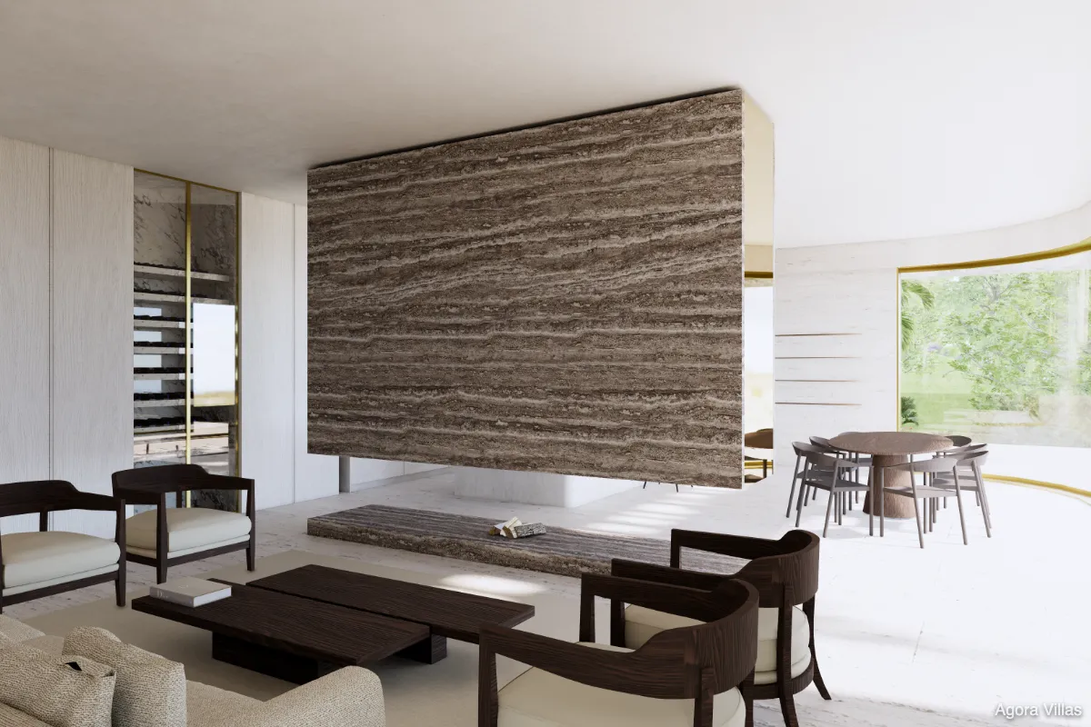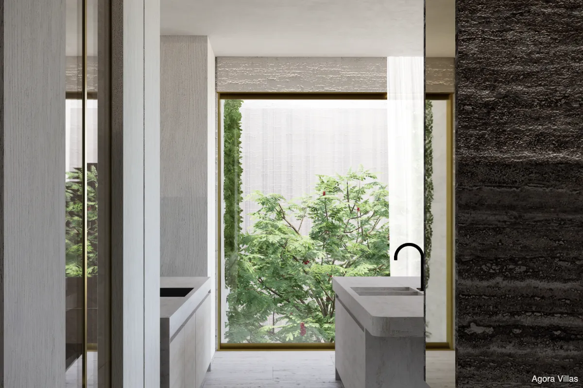 Distributed across two floors plus a spacious basement, the home will offer 5 bedrooms and 4 bathrooms, with the flexibility to include a home cinema, spa, gym, and two additional bedrooms. The layout is centered around flow, privacy, and functionality. Large open-plan living areas with expansive glazing invite the outdoors in, while the 26-meter-long private swimming pool becomes the focal point of the villa’s outdoor living space.