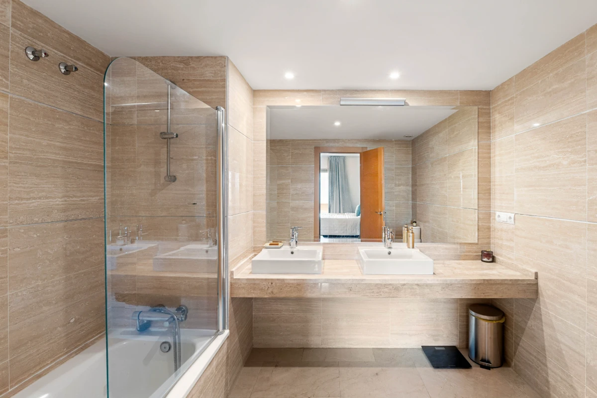 Spanning 118 m² of stylish interiors, the apartment features an open-plan layout where a modern kitchen flows effortlessly into the living and dining space, enhanced by natural light and clean architectural lines. Two generous terraces — totalling 80 m² — offer panoramic sea views stretching across to the African coastline. One terrace is designed for lounging and sun-soaked afternoons, while the second southwest-facing space is ideal for outdoor dining or entertaining.