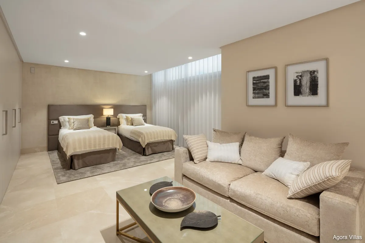 For wellness and entertainment, the villa includes a full spa with sauna and Turkish bath, a home office, and a custom-designed leisure lounge featuring a home cinema, billiard table, and a bespoke bar with dual wine coolers. With parking for 10 cars and impeccable design throughout, Paraiso 436 is ideal for a discerning buyer seeking a legacy residence or lifestyle investment in Estepona East.