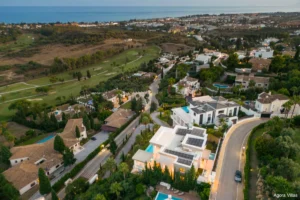 Poised on an elevated plot in El Paraíso Alto, Paraiso 436 is an extraordinary 7-bedroom villa offering panoramic views across the golf course, La Concha mountain, the coastline, and the Mediterranean Sea. Designed with elegant symmetry and southern exposure, the property captures sunrises, sunsets, and the full spectrum of Marbella’s natural beauty — creating a serene yet sophisticated setting for year-round living or refined retreat.