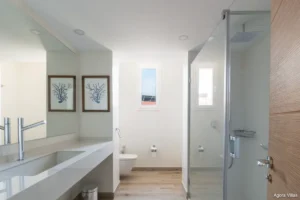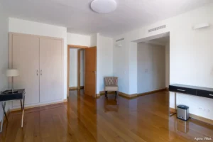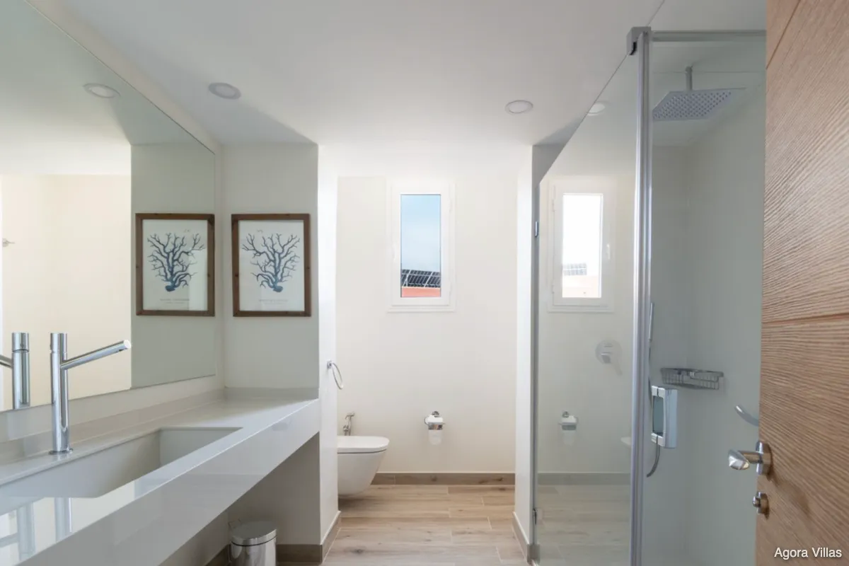 Spanning 261 m² all on one level, the residence features three spacious en-suite bedrooms, a guest toilet, and expansive indoor-outdoor flow. The open-plan living area connects seamlessly to a 47 m² sunlit terrace overlooking lush communal gardens and the pool. Natural light fills the interior, enhanced by rich wood flooring and modern architectural touches that add warmth and timeless sophistication.