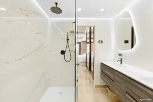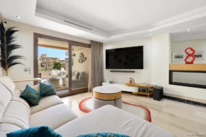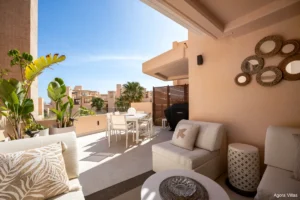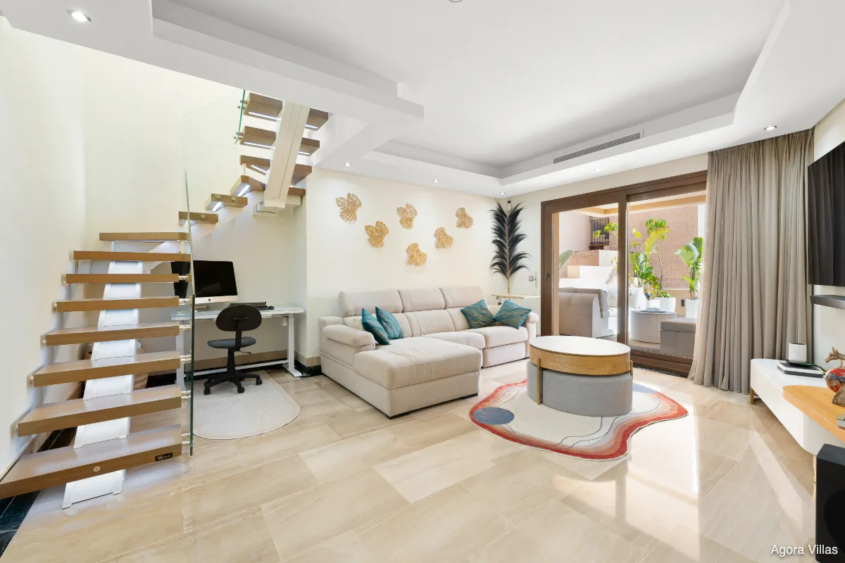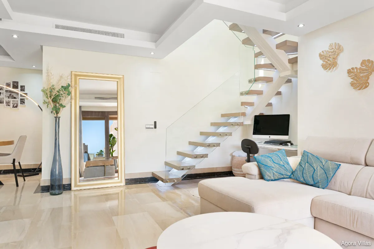 Penthouse La Sirena blends refined beachfront living with the comfort of a fully renovated duplex in one of Estepona’s most coveted gated communities—Bahía de la Plata. Facing south with uninterrupted Mediterranean views, this 4-bedroom residence stretches across two levels and 320 m² of total space, offering the kind of privacy, layout, and resort-style amenities rarely found on the Costa del Sol.