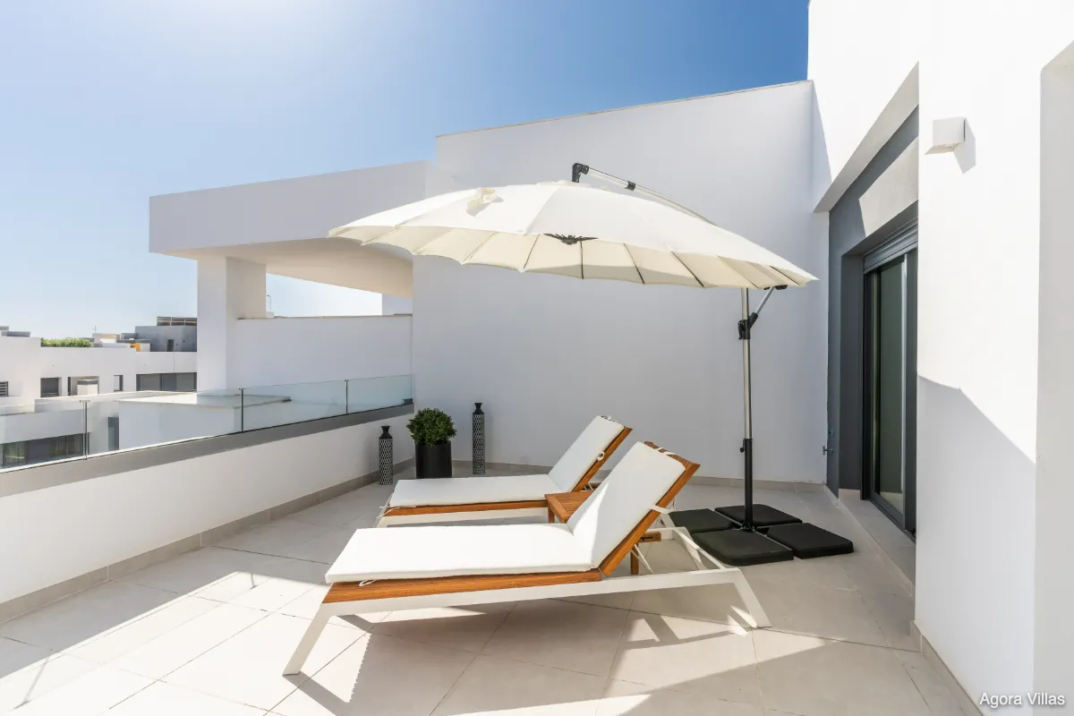 The rooftop terrace is a private sanctuary—perfect for sun-soaked mornings or evenings with guests. This exclusive residence is part of a secure, gated urbanisation offering resort-level amenities including four outdoor pools, a spa with an indoor pool, gym, yoga areas, cinema, coworking spaces, and lush landscaped gardens.