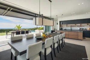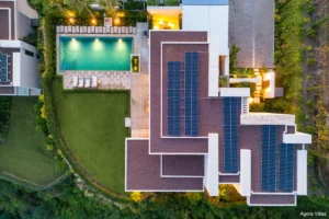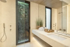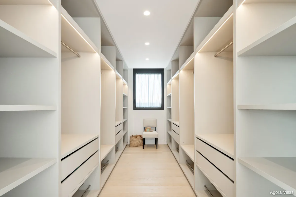 Spanning 738 m² of interior space with 238 m² of terraces and set on a generous 1,785 m² plot, the villa blends minimalism with natural elegance. Expansive windows frame south-facing sea views and flood the home with light, while open-plan interiors feature soft neutral tones punctuated by curated accents. The main level hosts four exquisitely appointed bedrooms, including a serene primary suite with a walk-in wardrobe and spa-style en-suite bathroom.