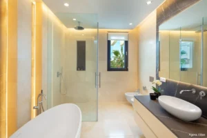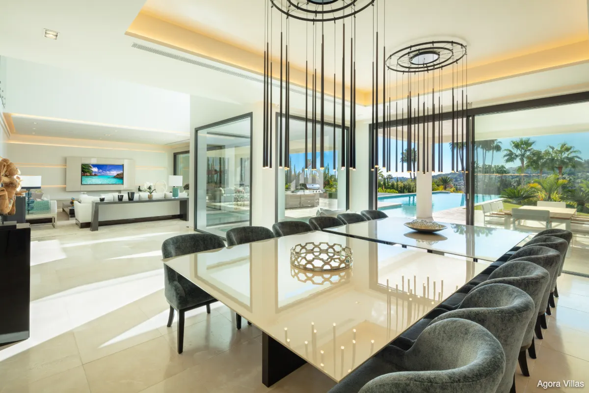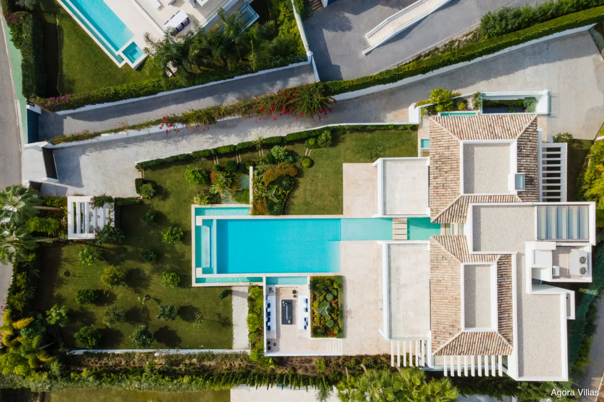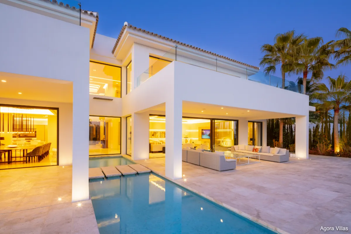 Constructed in 2019 with top-grade materials and avant-garde architecture, Villa Aurora blends luxury, privacy, and location. It sits just minutes from the dining and shopping options of Puerto Banús and Nueva Andalucía while remaining tucked away in one of Marbella’s most exclusive gated communities.