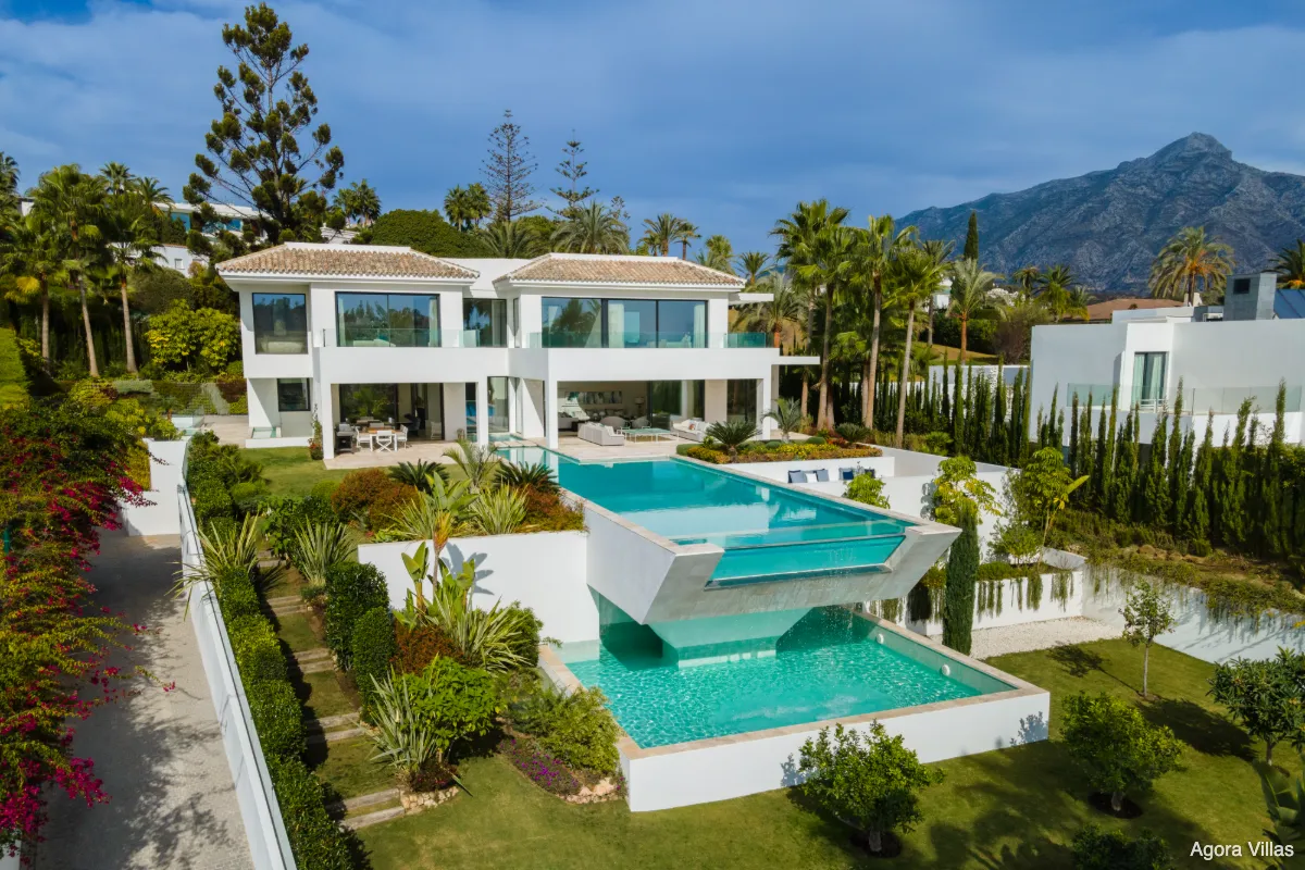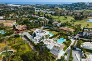 Set within the prestigious enclave of La Cerquilla in Nueva Andalucía, Villa Aurora is a striking example of contemporary design surrounded by the natural beauty of the Golf Valley. Elevated on a prime 2,104 m² plot and overlooking the lush fairways of Los Naranjos Golf, this six-bedroom villa delivers scale, sophistication, and a seamless indoor-outdoor lifestyle.