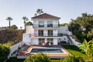 Set into the hillside of Forest Hills, just a short drive from the centre of Estepona and the beach, Villa Jazu offers a tranquil living experience surrounded by greenery and panoramic sea and mountain views. Designed over three levels and positioned on a 583 m² plot, this fully private residence balances comfort, function, and a strong connection to nature — making it ideal for full-time living, relaxed holidays, or a smart investment.