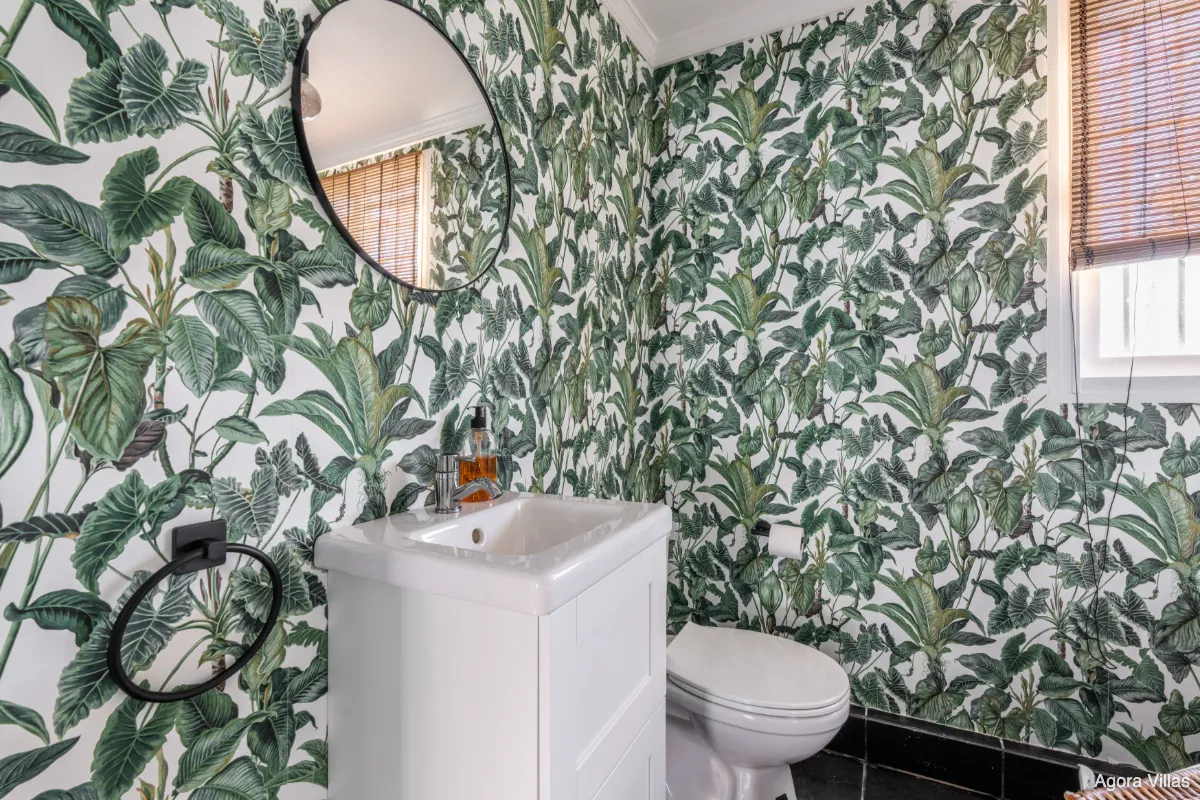 The lower floor includes two bedrooms with access to a shaded terrace, one of which benefits from its own en-suite bathroom and outdoor space. The garden level is home to the master bedroom — a serene suite with direct access to the private pool and sun deck, perfect for peaceful mornings and poolside lounging.
