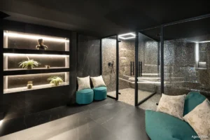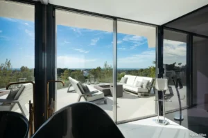 Spread across 555 m² of interior living space and 530 m² of terraces, this three-level home is framed by floor-to-ceiling windows that open to sweeping views of the Mediterranean and surrounding mountains. Every room is infused with light and crafted with minimalist lines, natural textures, and seamless transitions between indoor and outdoor living.