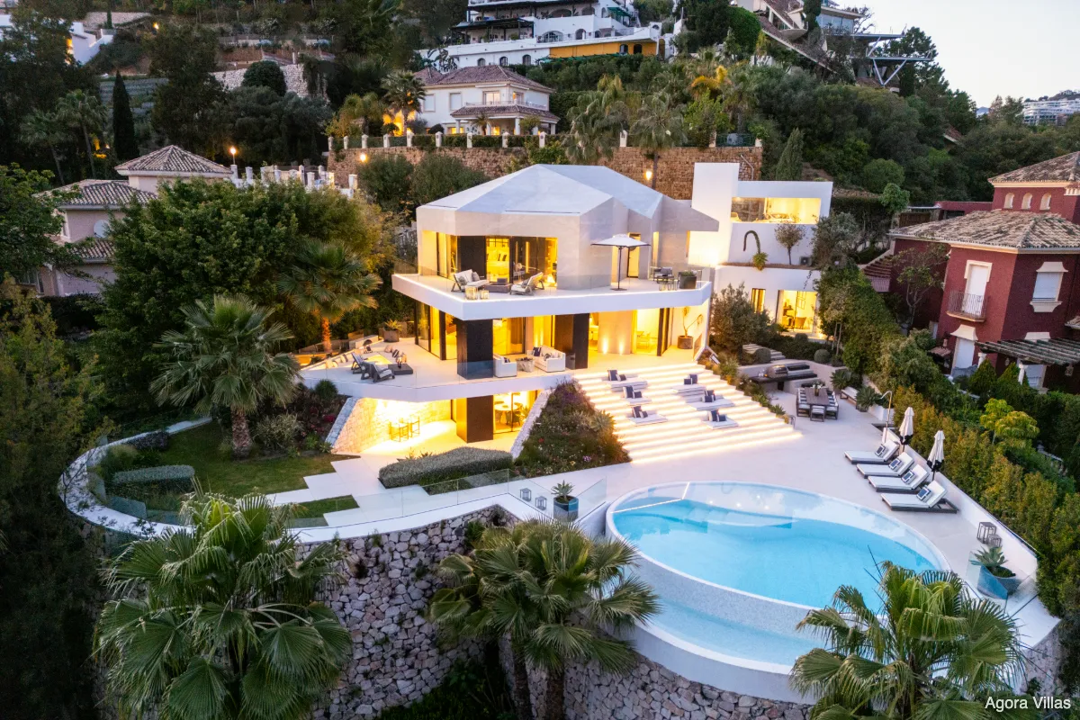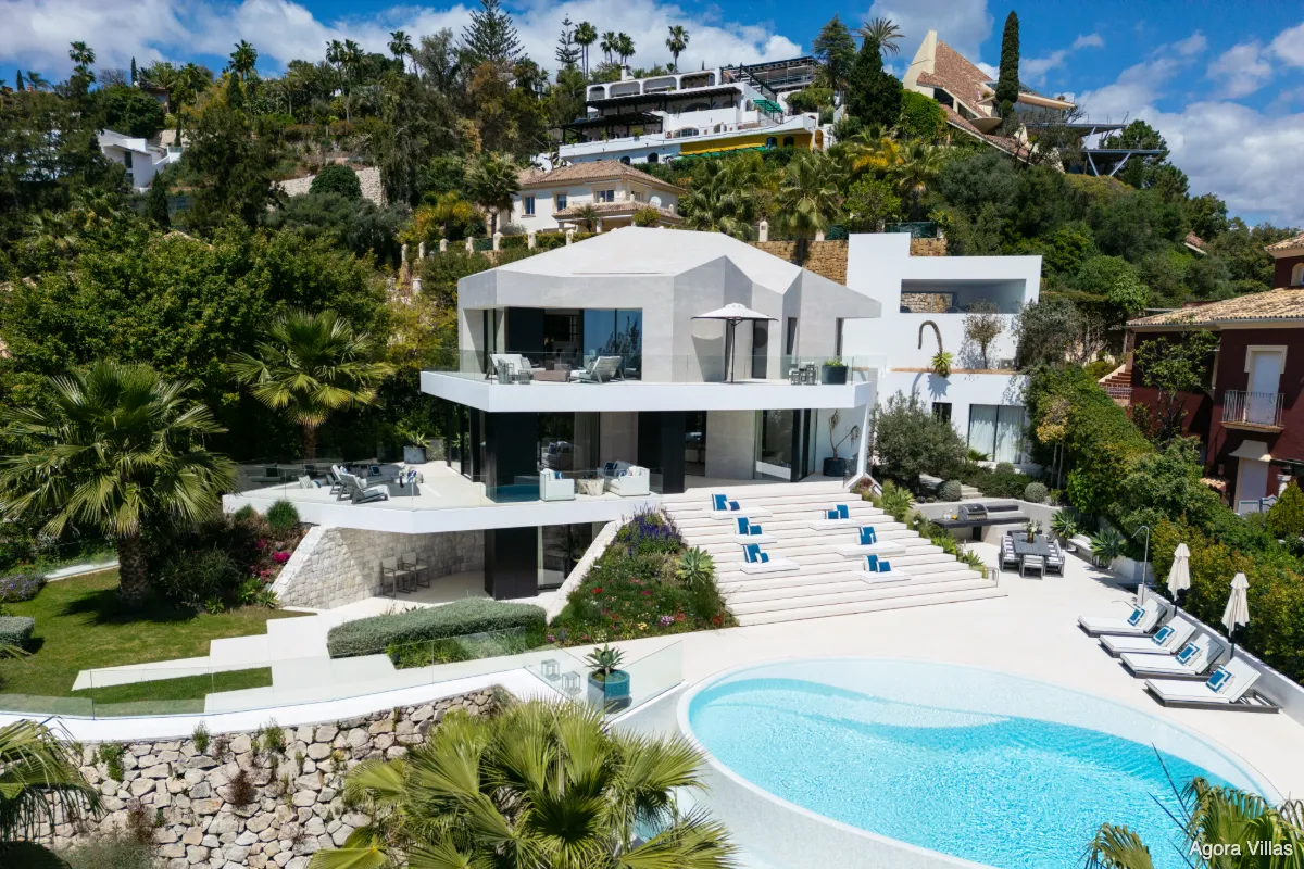 Perched within the gated enclave of El Herrojo Alto, Villa La Toca is a contemporary residence where design, privacy, and panoramic sea views converge. Designed by Ames Architects and completed in 2021, this south-facing five-bedroom villa stands as a modern icon—combining architectural precision with natural elegance in one of Benahavís’ most exclusive communities.