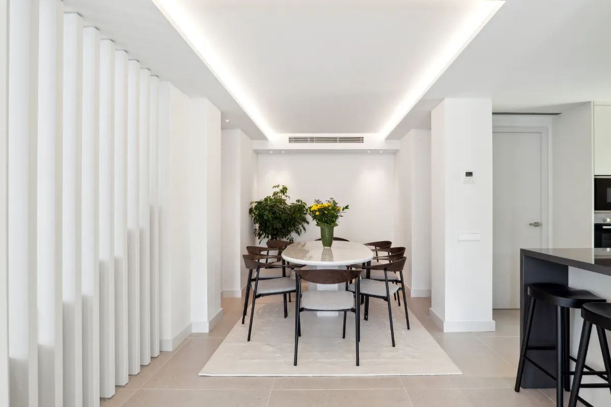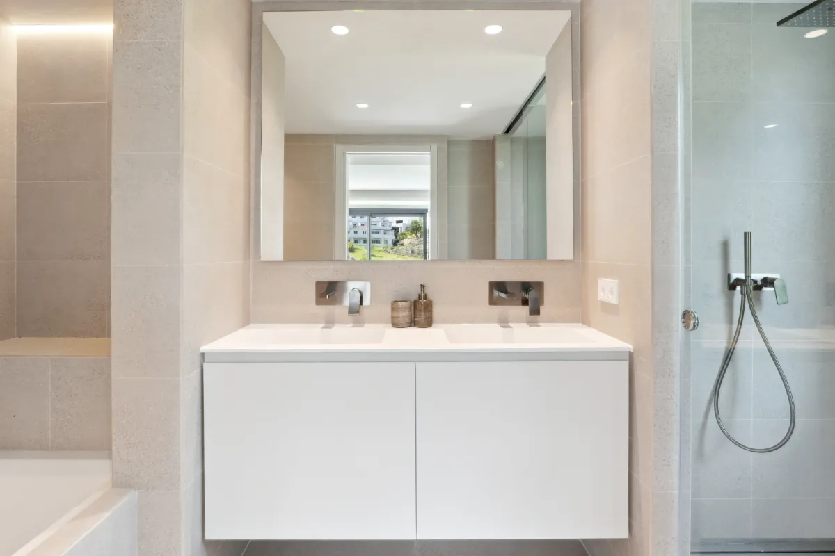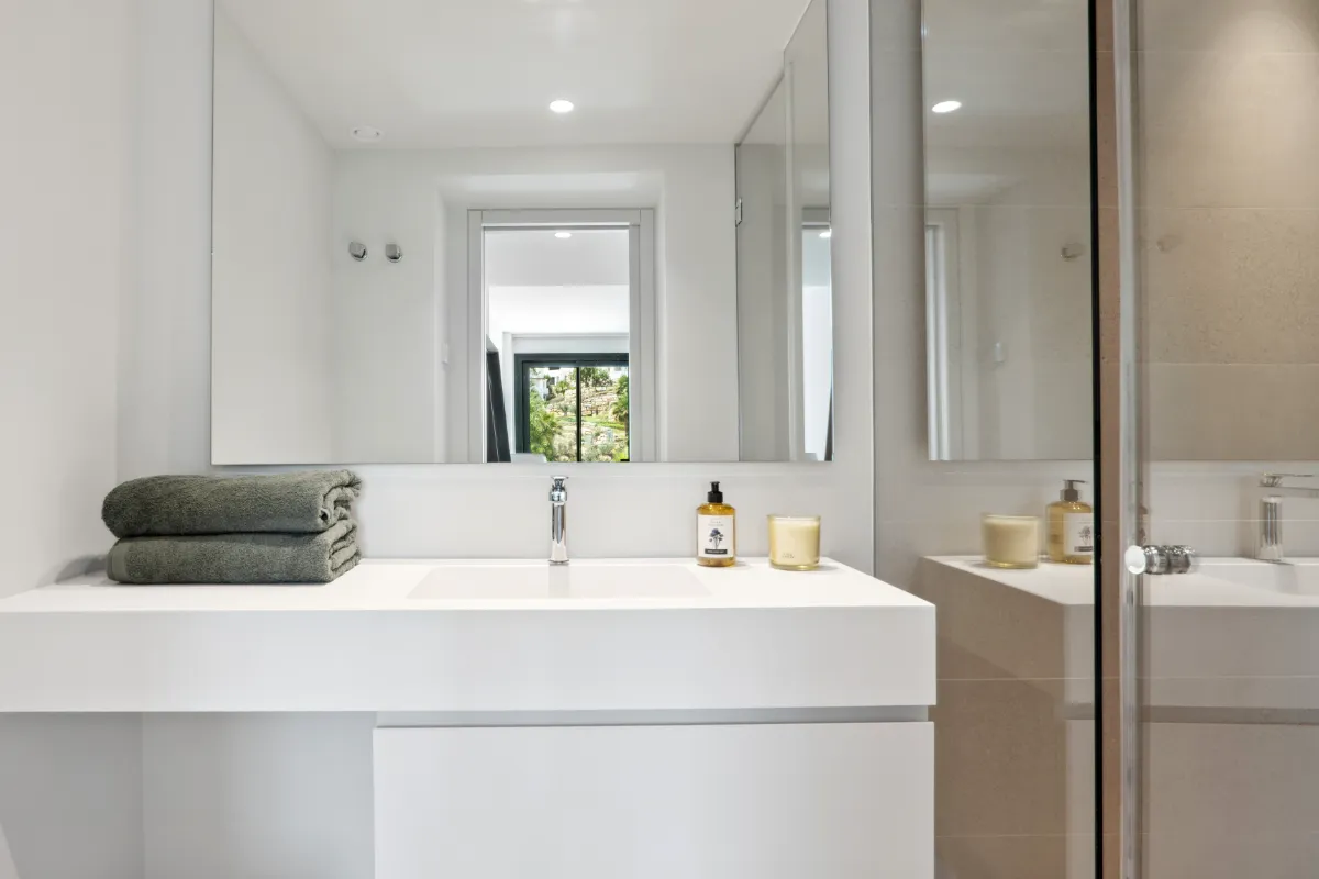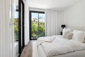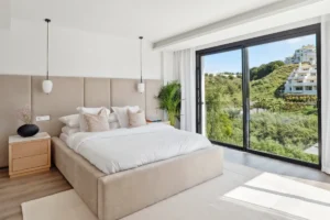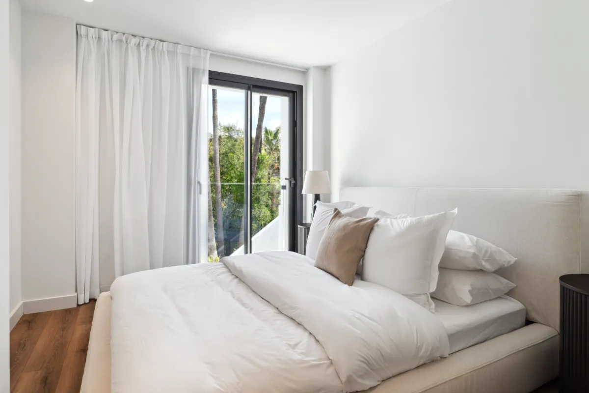 Outdoors, a generous pool and sunbathing deck create the perfect setting for long afternoons in the Marbella sun. The covered dining terrace is well suited for hosting under the stars. The villa is sold fully furnished, offering a turnkey opportunity for buyers who value both simplicity and style.