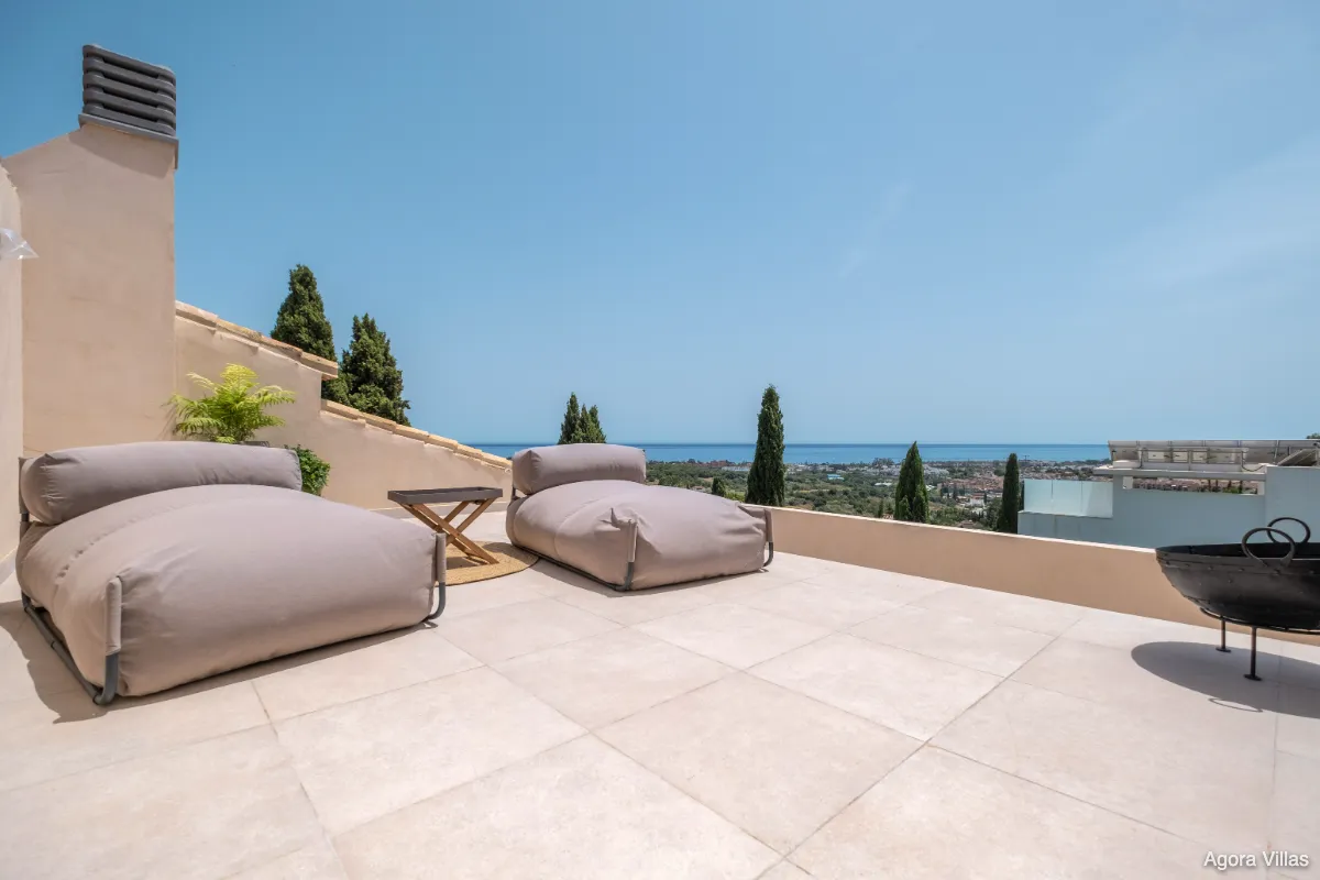 Framed by the green hills of Paraiso Alto and overlooking the Mediterranean, Villa Minoo is a refined 4-bedroom villa offering elegant living with a distinctly Mediterranean soul. Fully renovated in 2022, this property blends timeless architectural elements with modern comfort, delivering a serene and private lifestyle just minutes from Puerto Banús.