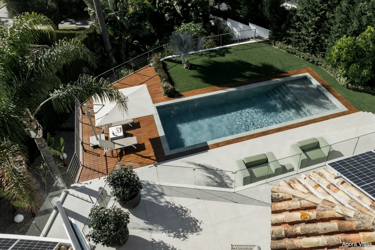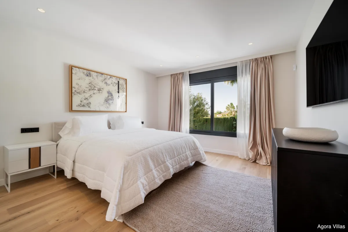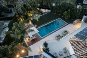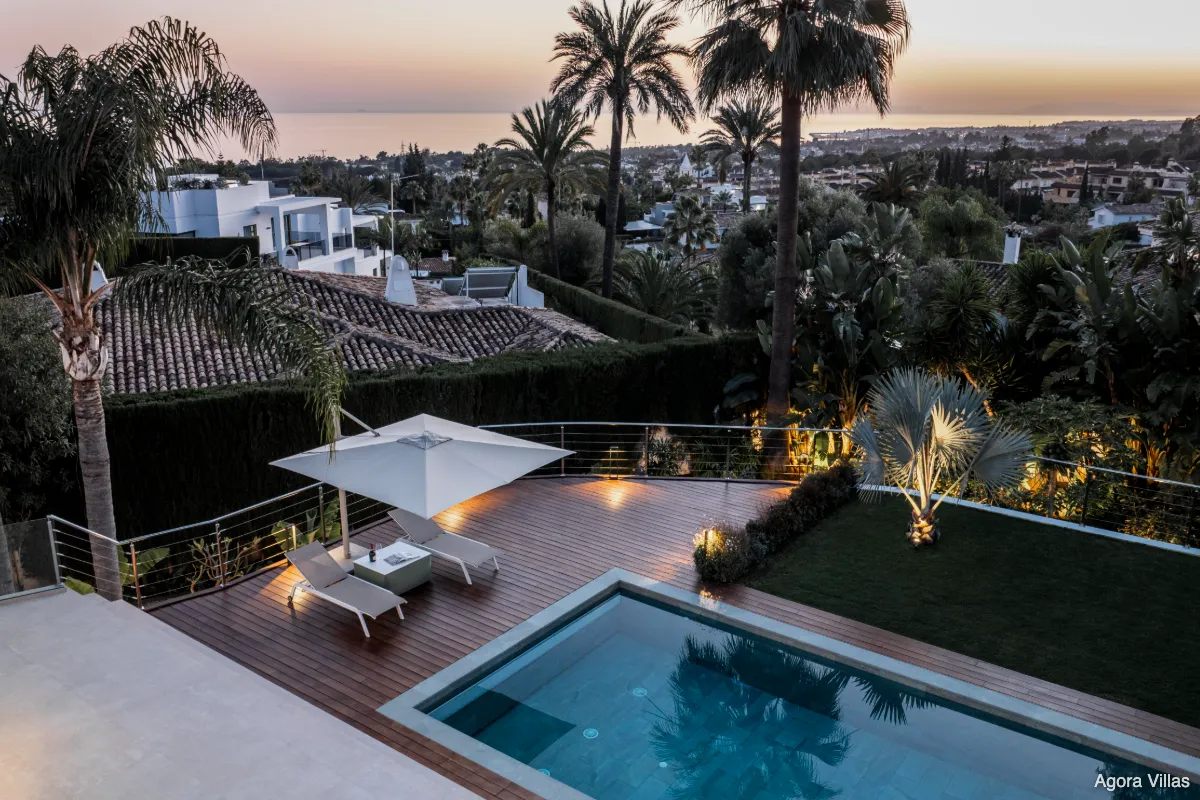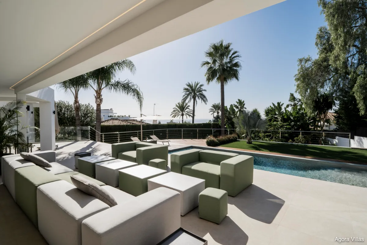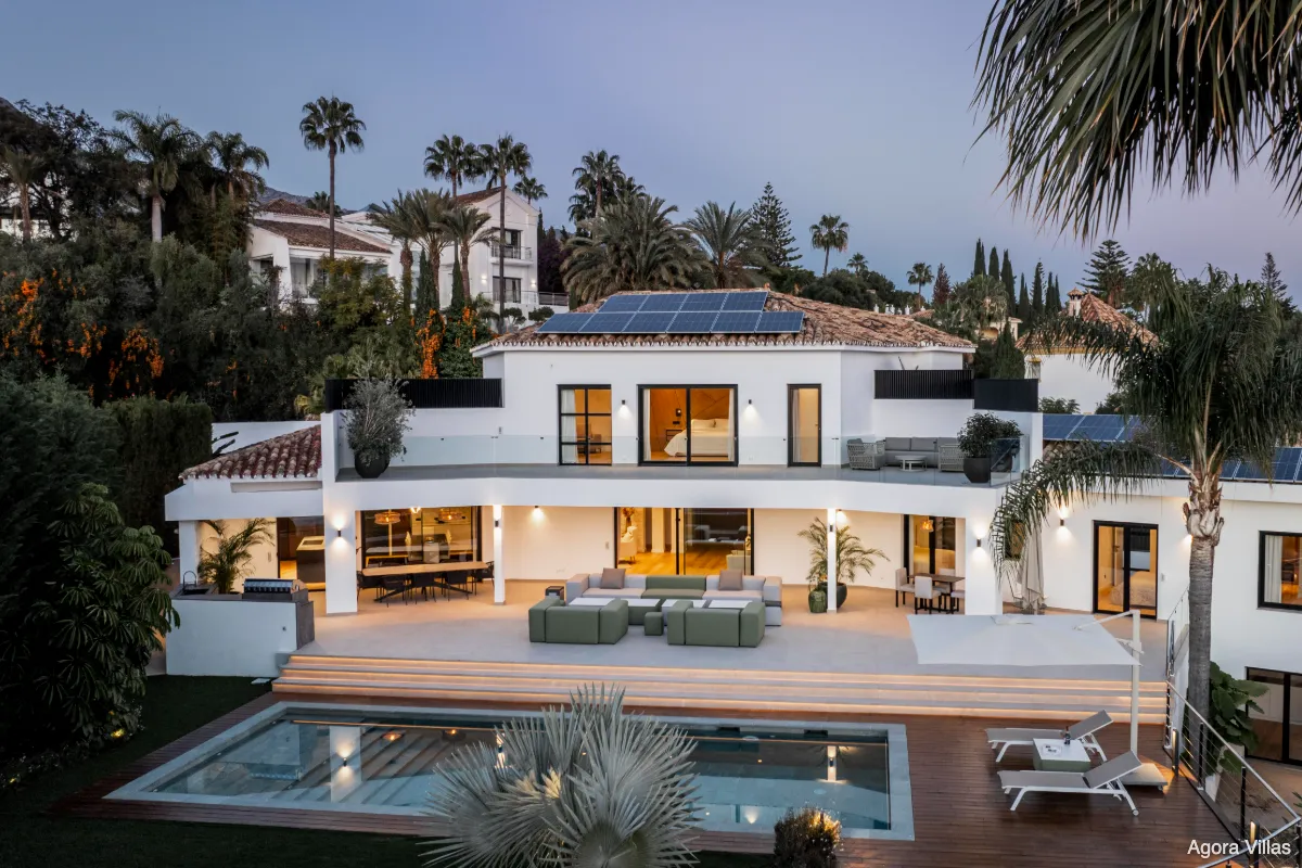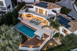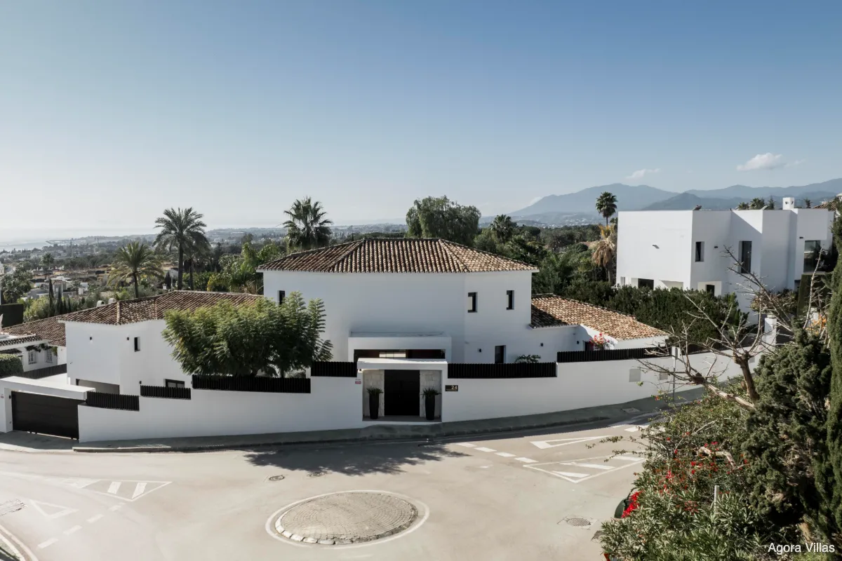 Positioned at the gateway to Sierra Blanca yet officially located in Nagüeles, Villa San Antoine is a grand yet inviting residence offering sweeping views of the Mediterranean, all-day sun, and generous volumes of space. Its elevated location provides a sense of privacy while remaining just minutes from Marbella’s Golden Mile, Puente Romano, and the beach.