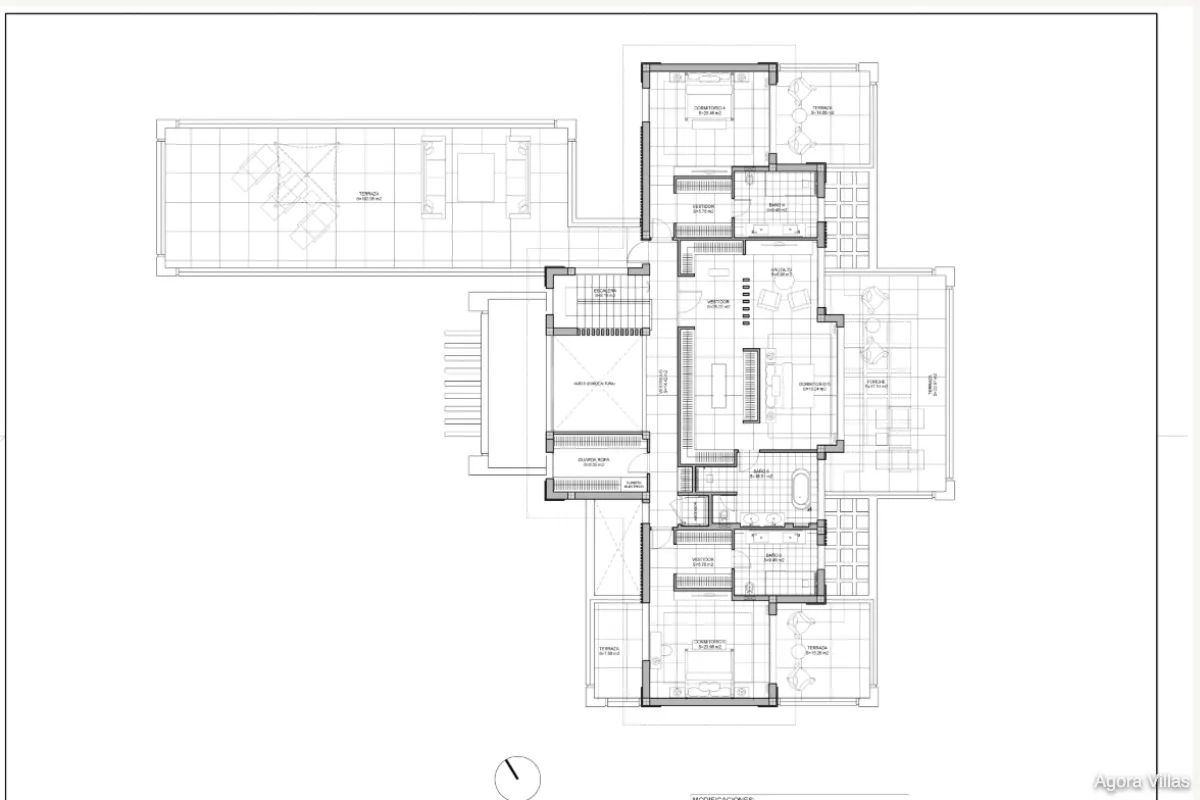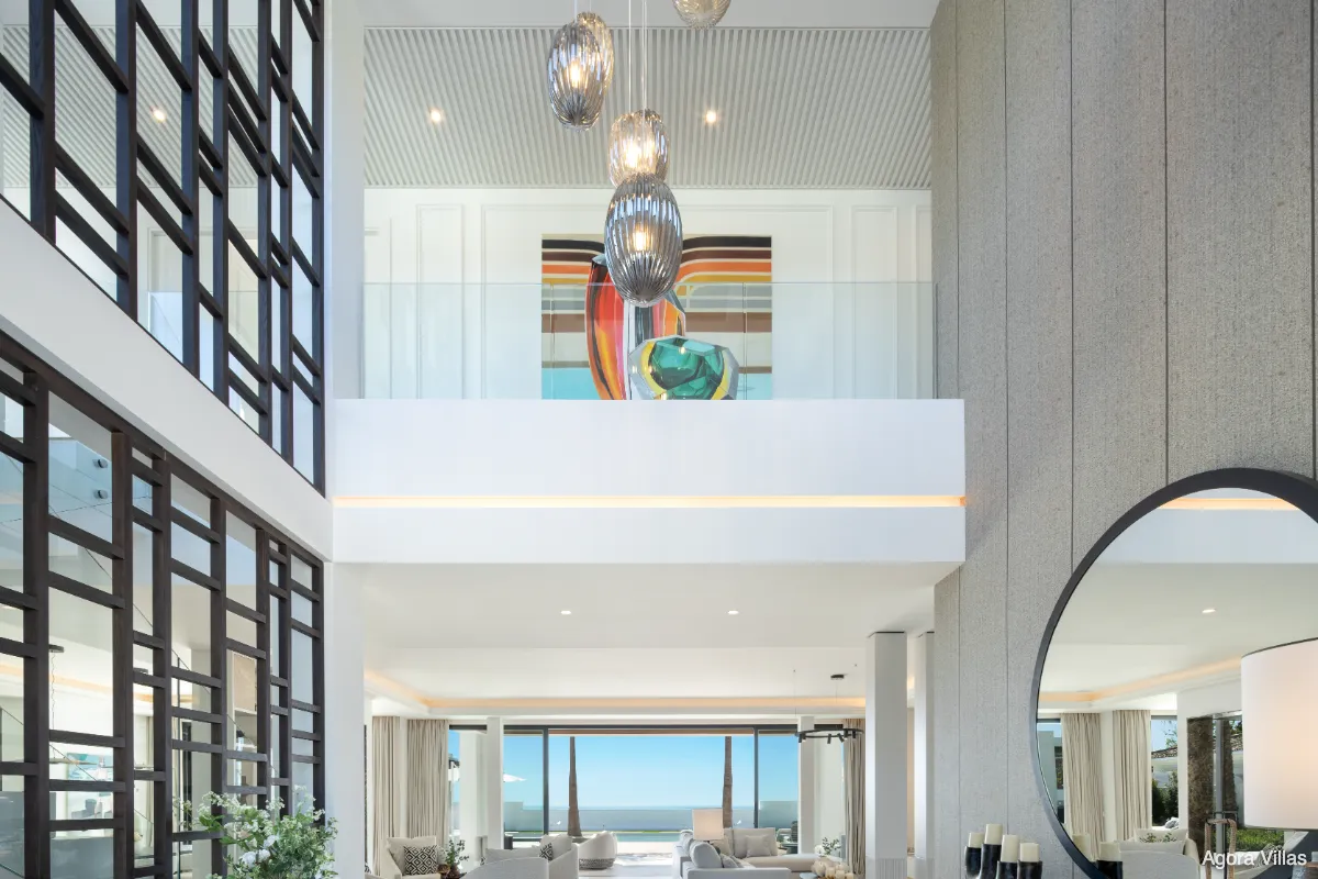 Spanning 803 m² across three levels, with an additional 196 m² of terraces, the villa is south-facing and flooded with natural light through expansive floor-to-ceiling windows. Each of the seven bedrooms has its own en-suite bathroom, with the master suite and upper bedrooms enjoying elevated views and exclusive privacy.