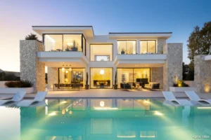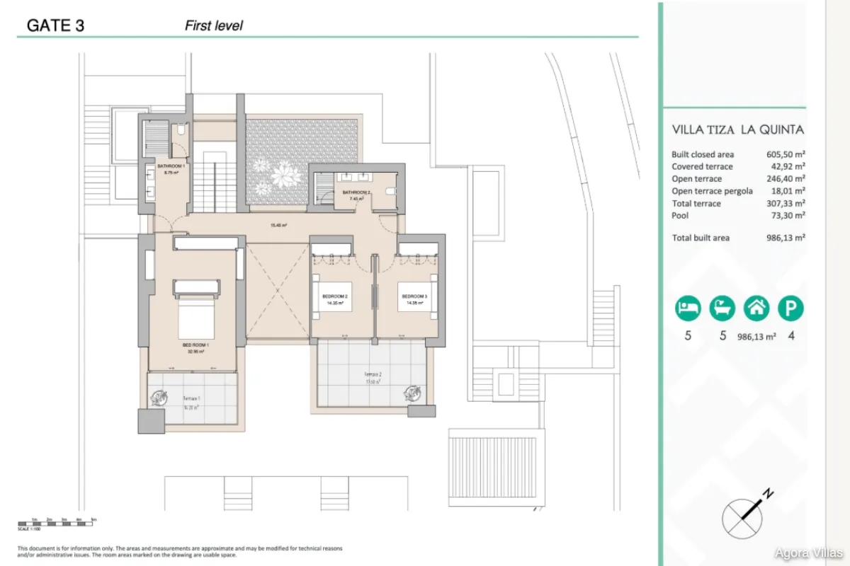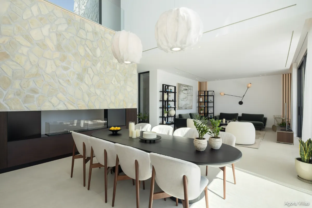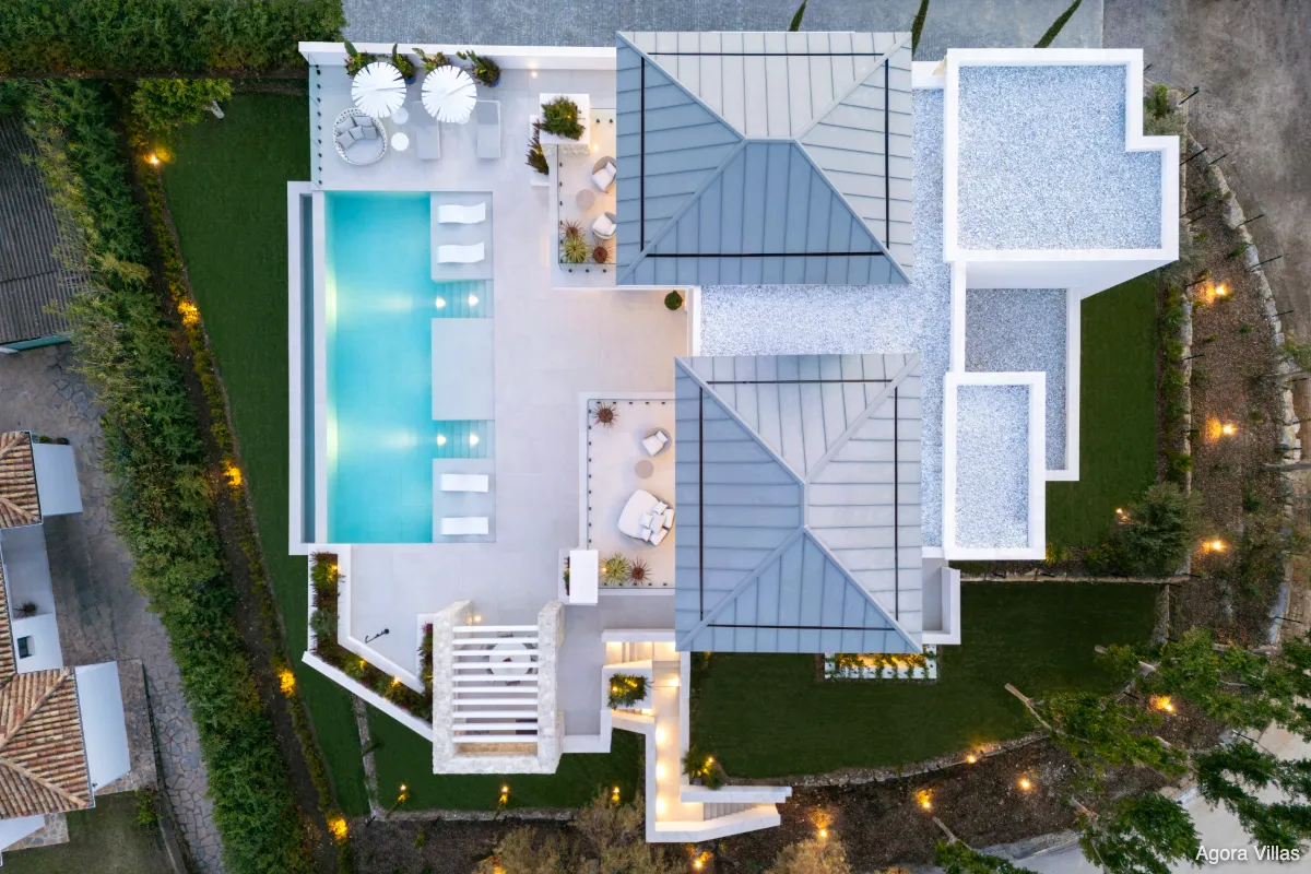 With a built area of 605 m² and 307 m² of terraces, the home is anchored by a 120 m² open-concept kitchen, living, and dining area that flows seamlessly to the saltwater pool deck and south-facing terraces. The master suite features a spacious walk-in dressing room and a spa-inspired bathroom, while four additional bedrooms ensure comfort for guests and family.