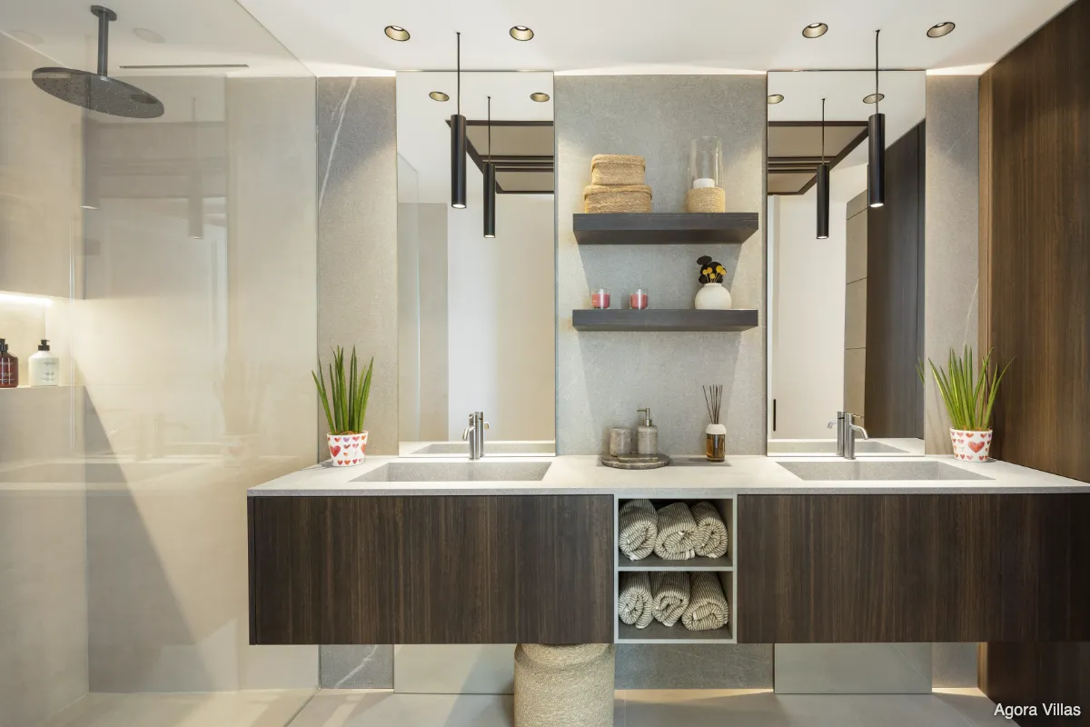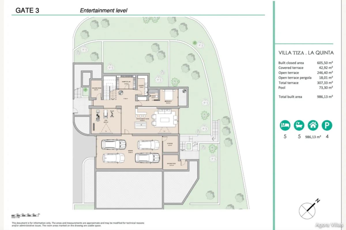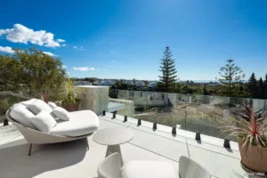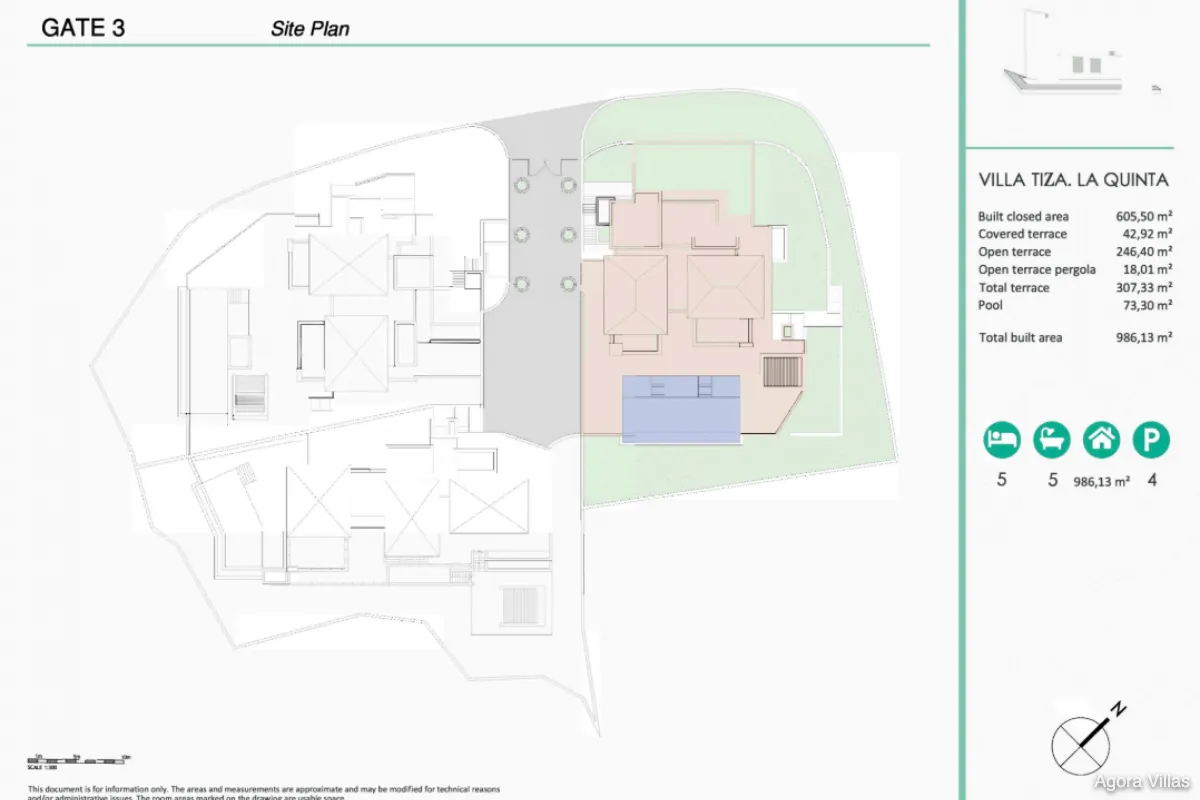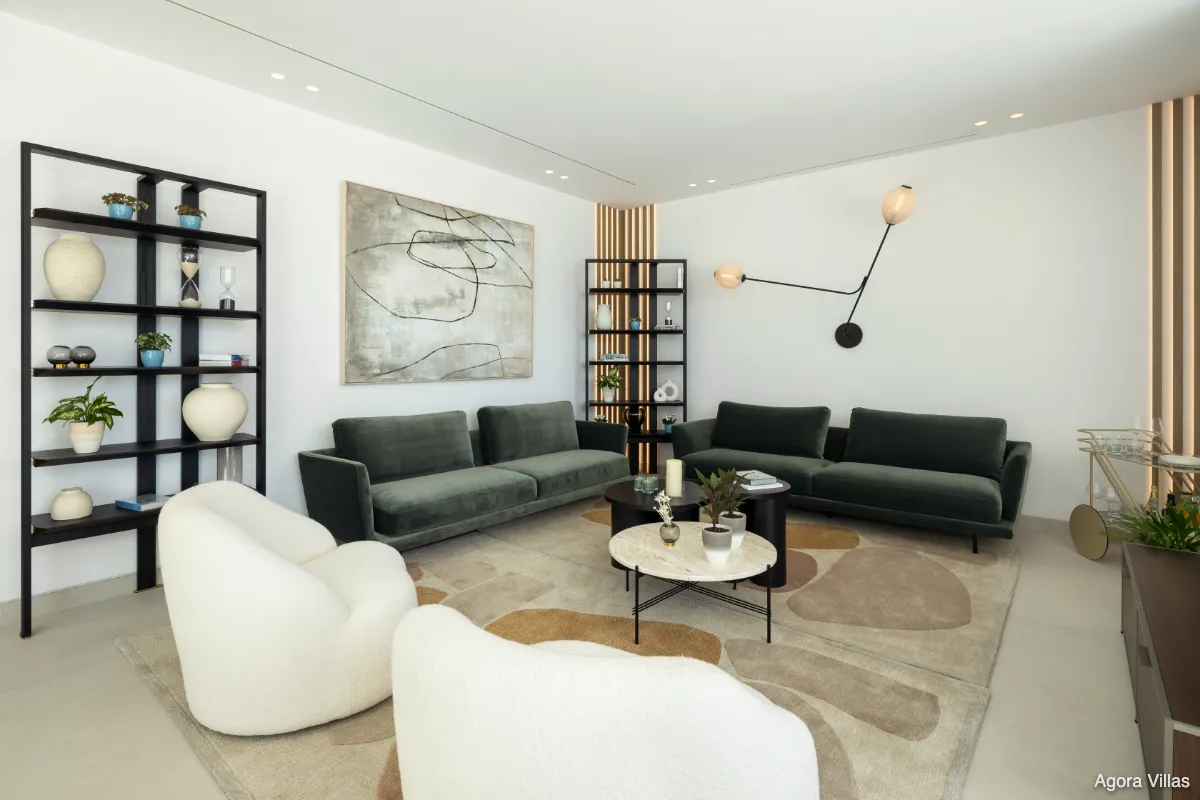 With a built area of 605 m² and 307 m² of terraces, the home is anchored by a 120 m² open-concept kitchen, living, and dining area that flows seamlessly to the saltwater pool deck and south-facing terraces. The master suite features a spacious walk-in dressing room and a spa-inspired bathroom, while four additional bedrooms ensure comfort for guests and family.