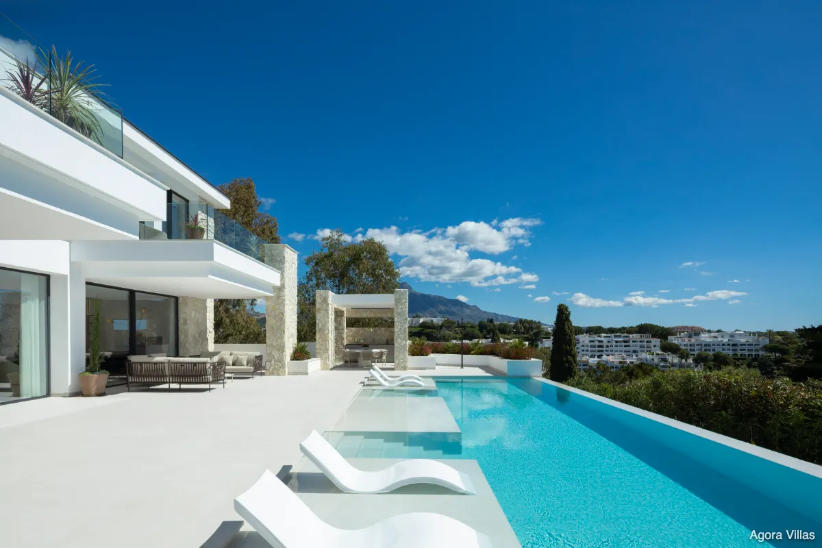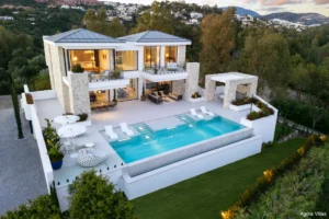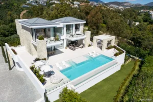 Set in an exclusive gated enclave of just three residences in La Quinta, Villa Tiza is a newly completed architectural gem offering sweeping views of the Mediterranean and La Concha mountain. Designed for refined, modern living, this five-bedroom villa spans three levels and effortlessly blends elegance, energy efficiency, and advanced smart-home technology.