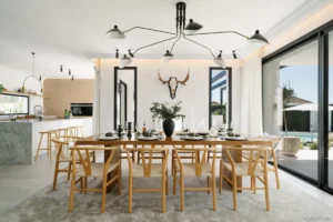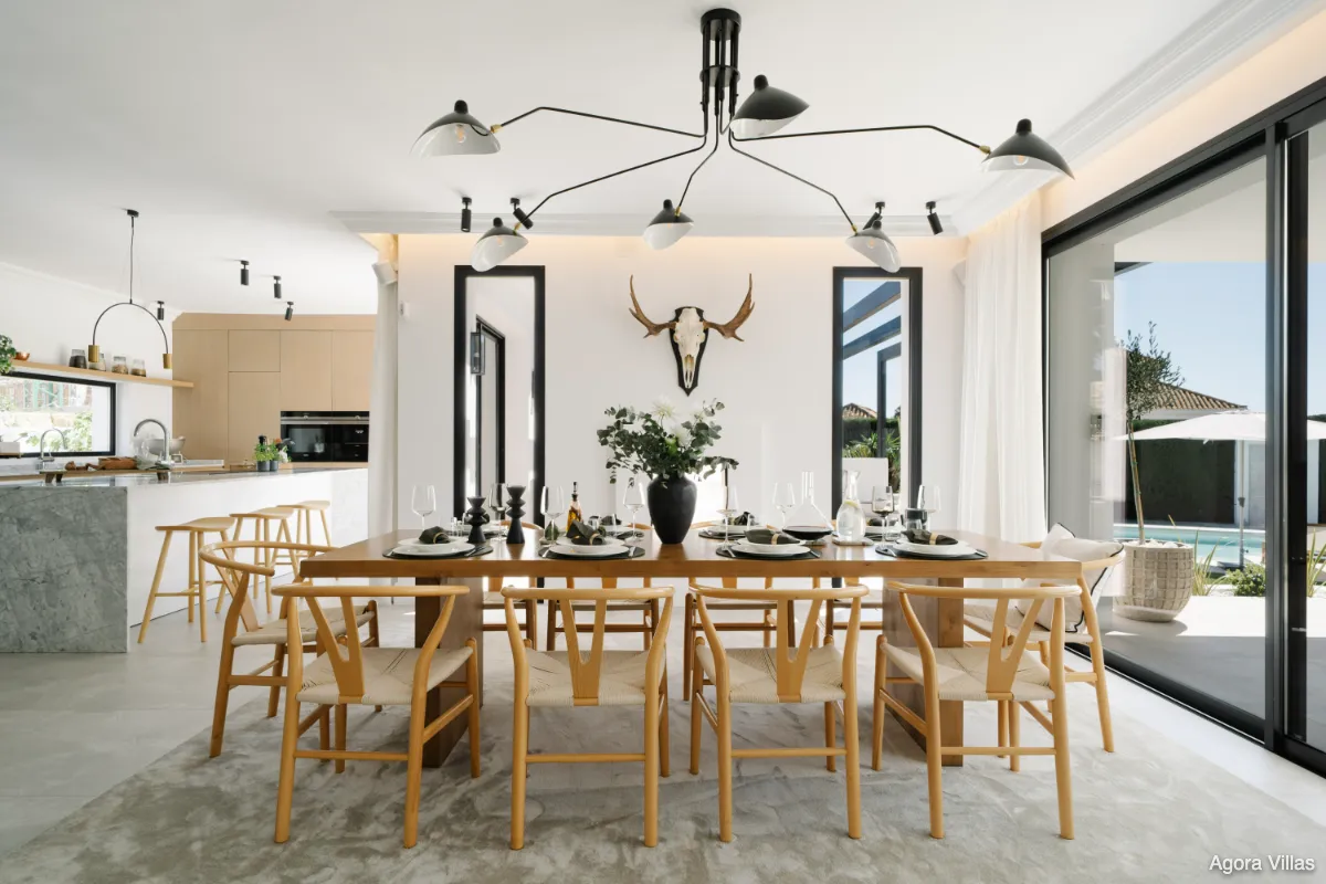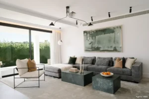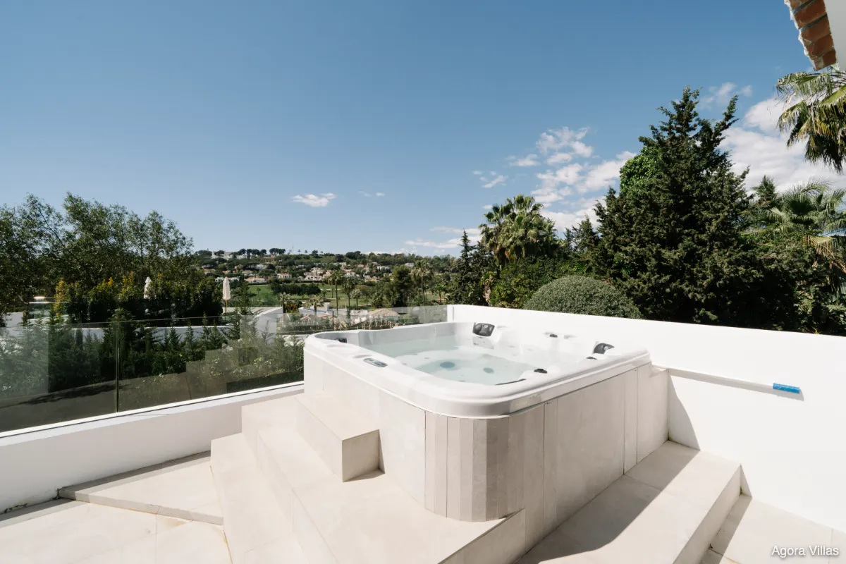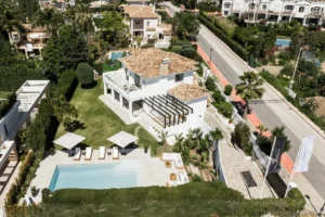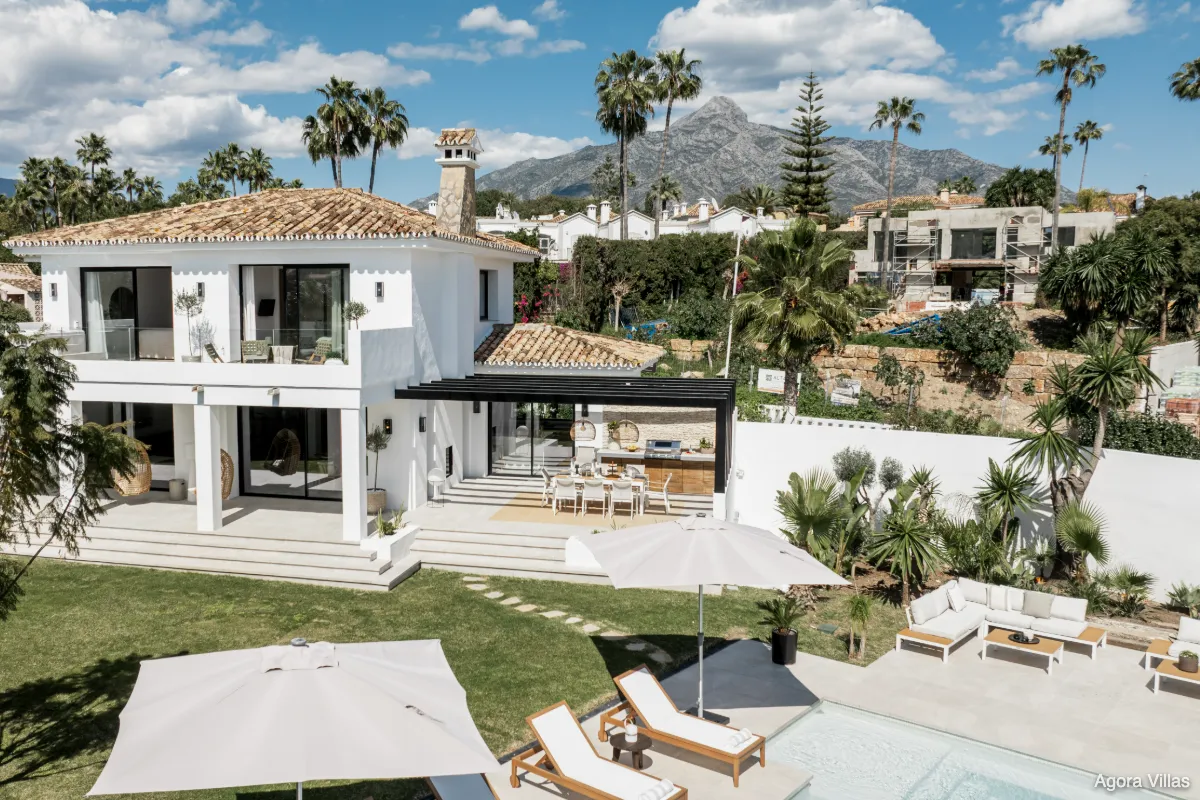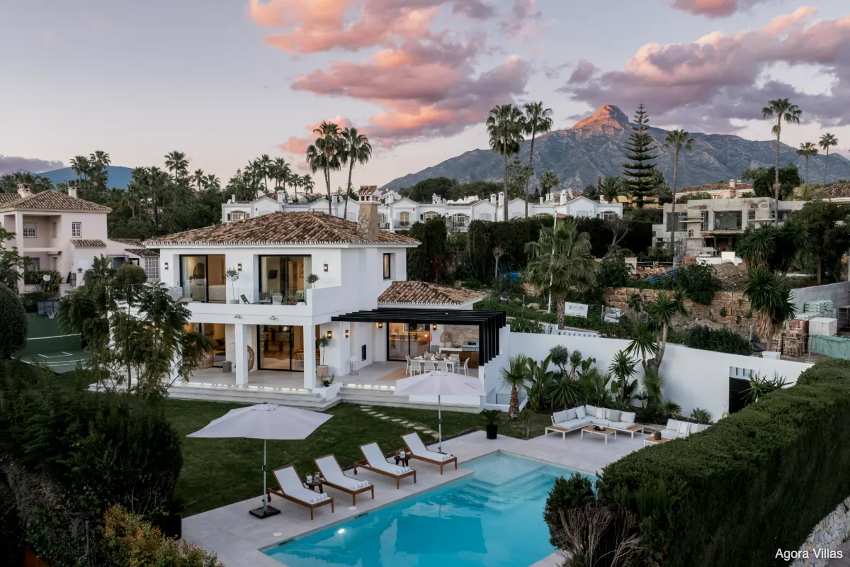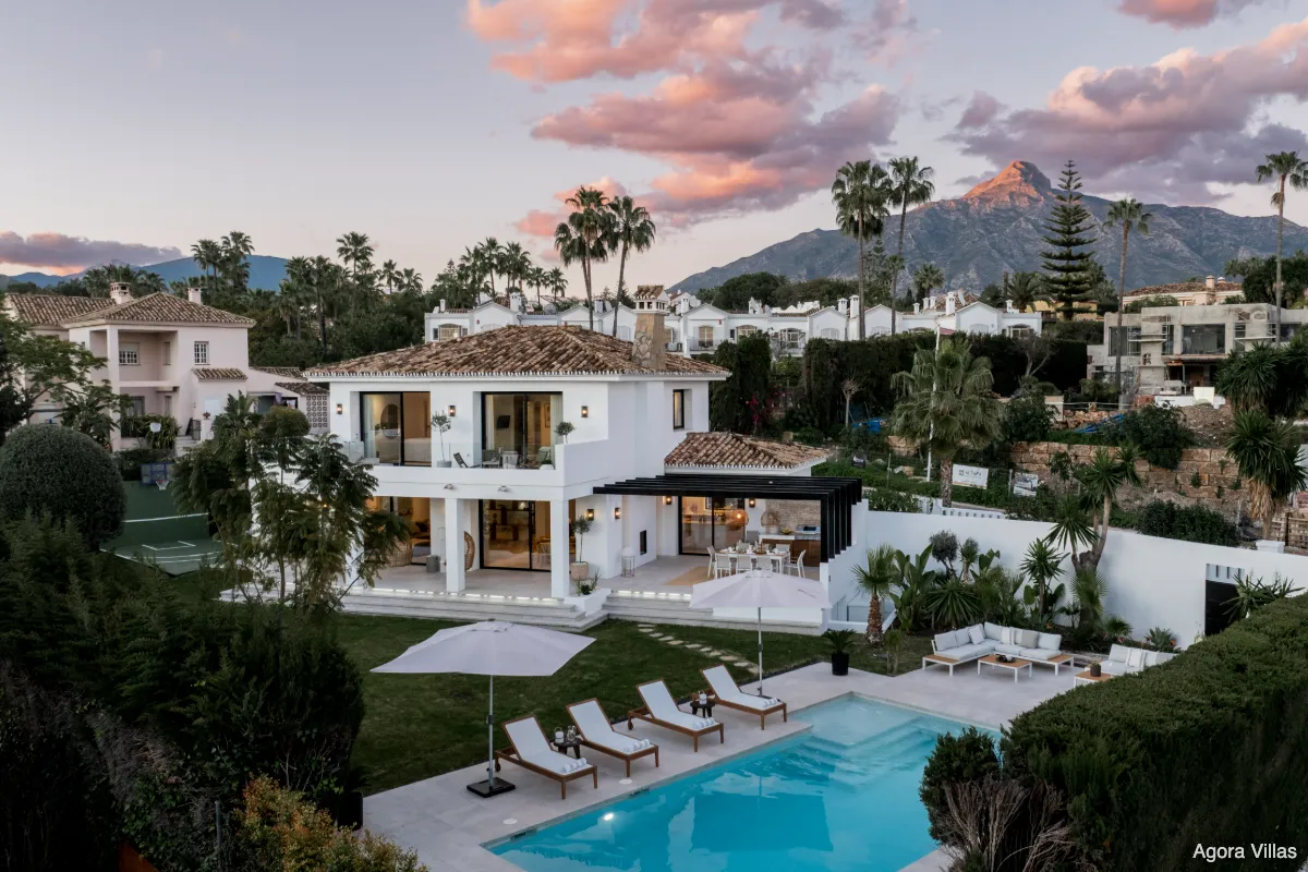 With views over the fairways and La Concha as a dramatic backdrop, Villa Vera is a beautifully renovated five-bedroom home in the heart of Nueva Andalucía’s Golf Valley. Combining Andalusian character with contemporary design, this southwest-facing villa offers an effortless indoor-outdoor flow, generous family living, and moments of quiet luxury — all within minutes of Puerto Banús.