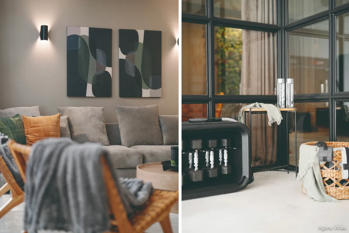 Upstairs, the primary suite enjoys a private terrace with jacuzzi and open views across the golf course. Three more bedrooms share the level, designed to keep family or guests comfortably close. On the entrance floor, two flexible rooms adapt easily as a guest bedroom, home office, or playroom.