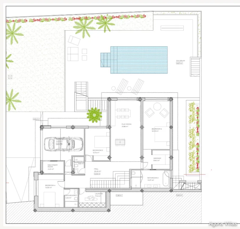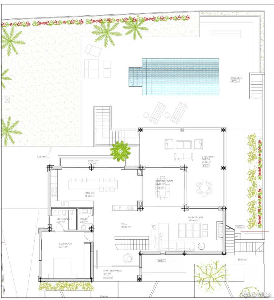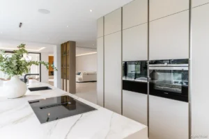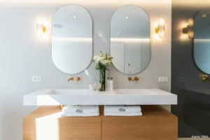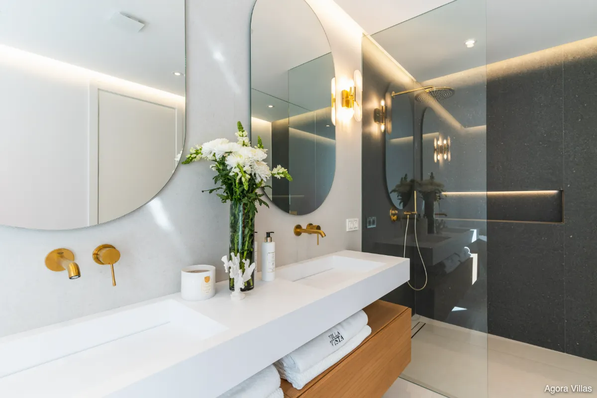 Set on an 804 m² plot, the villa features 405 m² of built space and 111 m² of terraces. It includes four spacious bedrooms and 4.5 bathrooms, with the master suite showcasing a spa-style bathroom and custom oak detailing. The interiors are finished with natural oak wood and premium porcelain, while the open-plan layout creates a seamless connection between kitchen, living, and outdoor areas.
